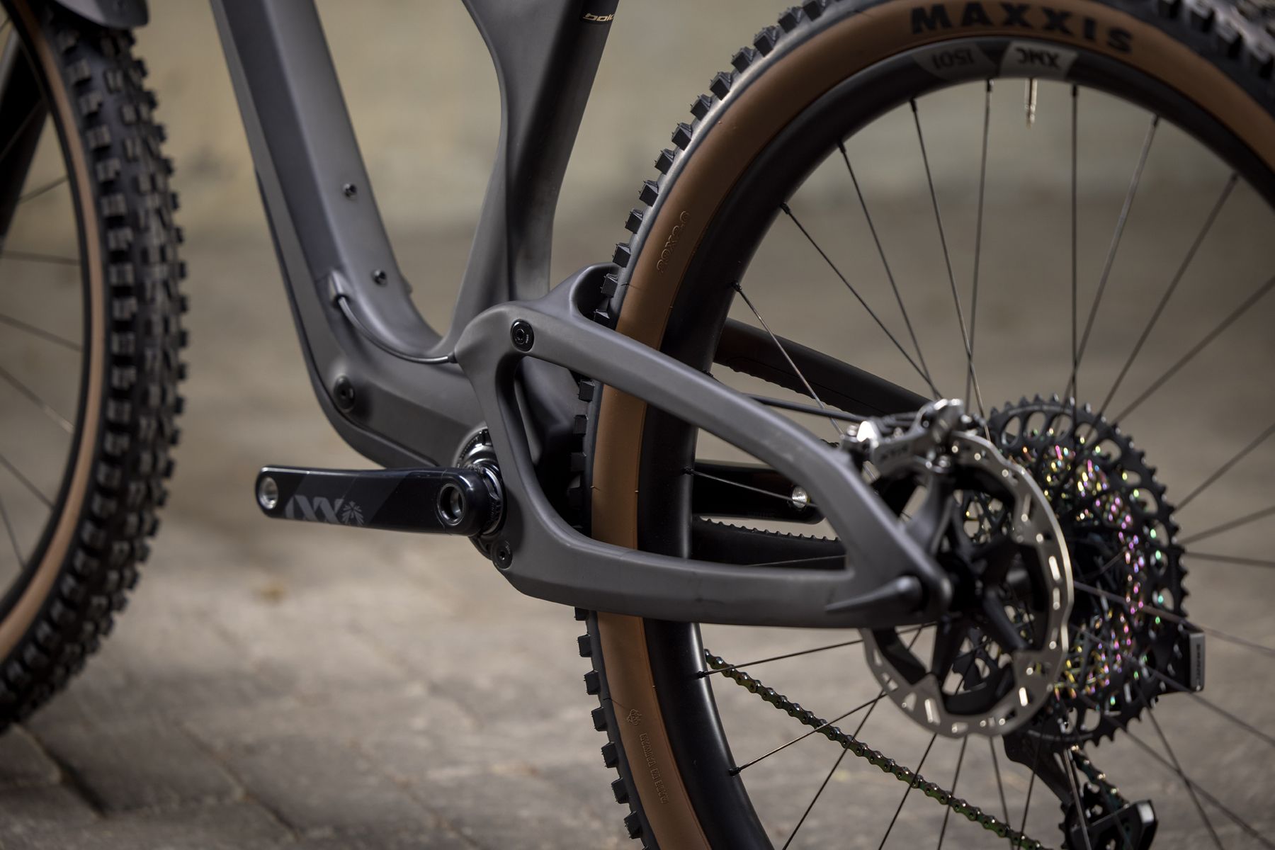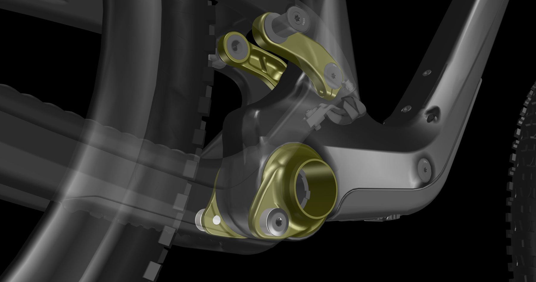 With the shock placed internally, we are able to design an ultra compact linkage system for low weight and high stiffness. The linkage is directly attached to the shock and mounted to an axle inside the frame, meaning the suspension pivots no longer have to be constructed around the frame. This makes our link shorter than any other traditional suspension platform.