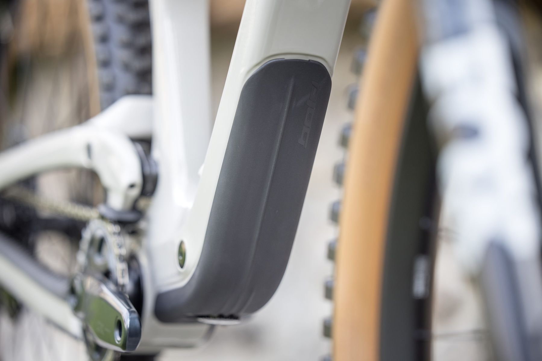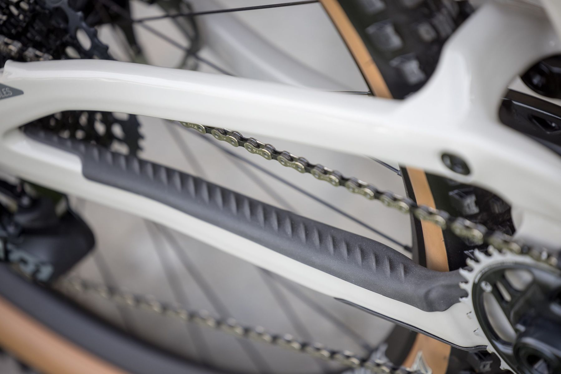 With the shock being internal, there’s a fancy sag setting system featuring magnets – for full Bike From The Future points.