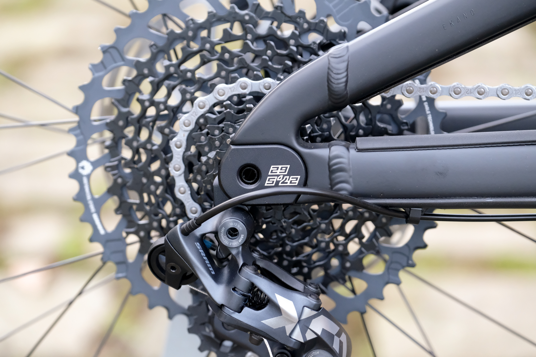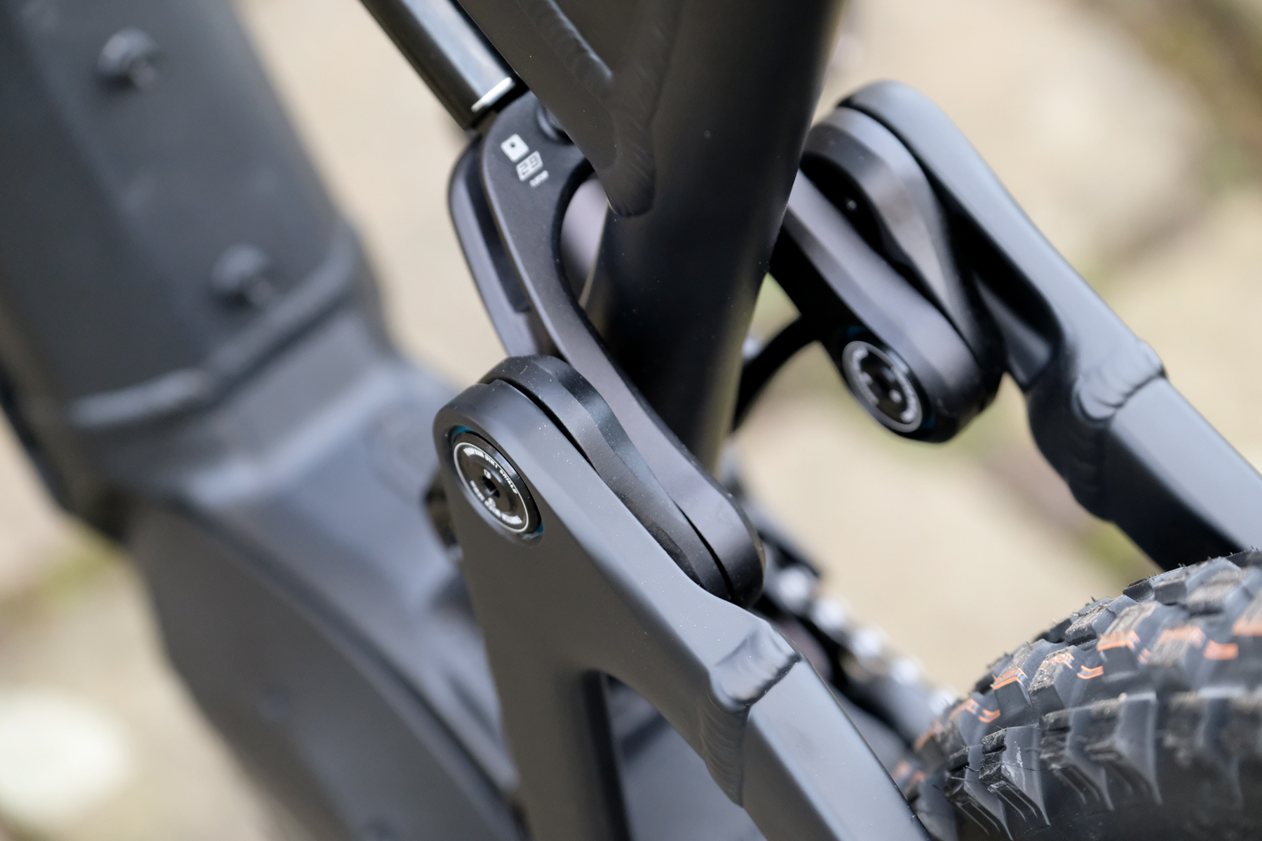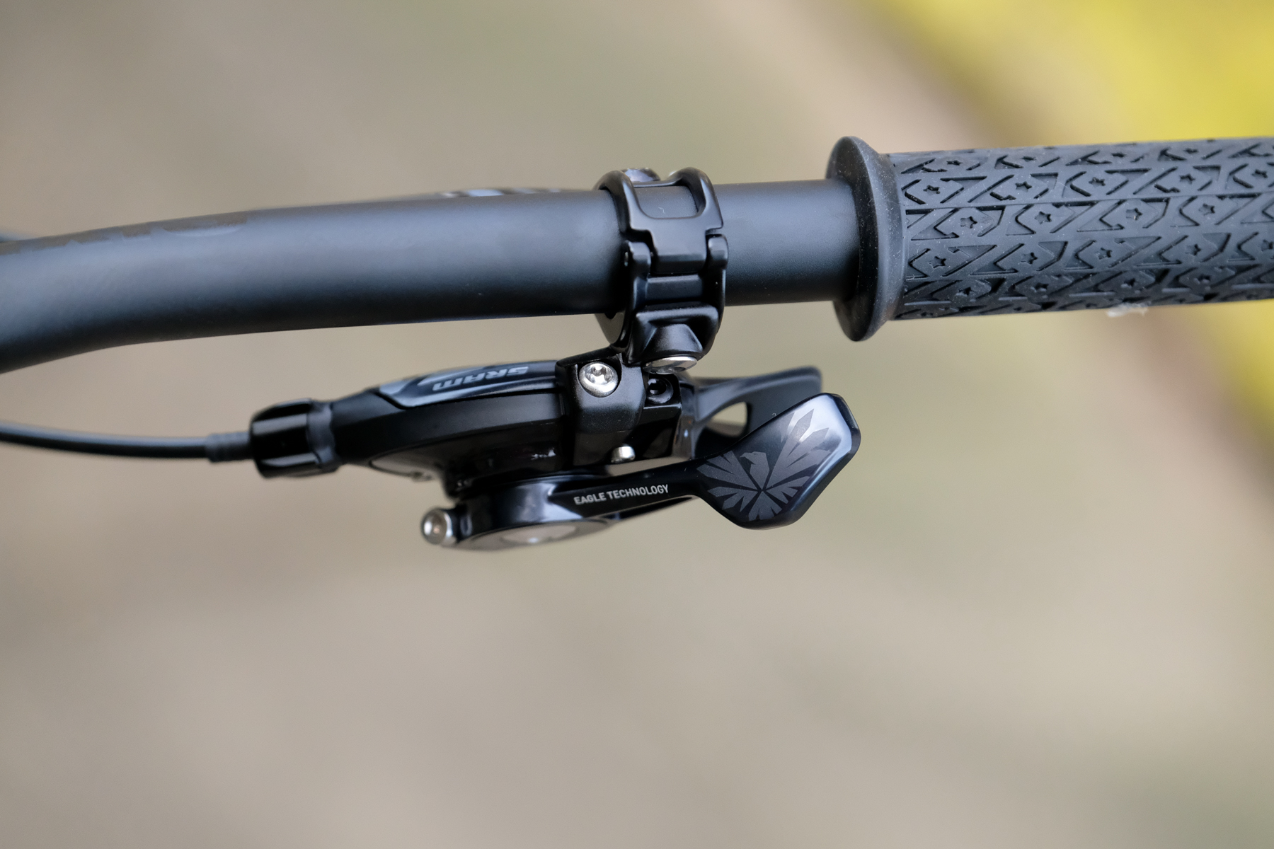 It’s a bike designed for the downs as much as the motor will drag you up again. That’s a big ole’ Zeb on the front with all the travels (170mm) and a RS Super Deluxe Ultimate RCT Air at the back (165mm). There’s a sprinkling of SRAM X01 componentry on this mid range Performance model.
