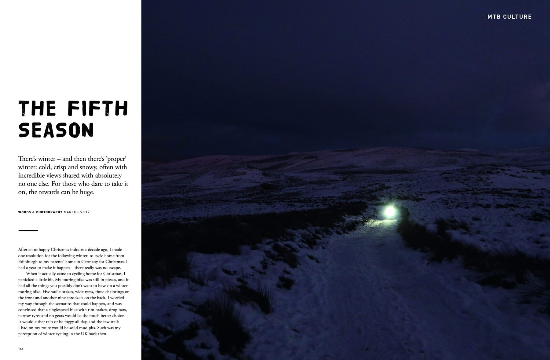 Markus Stitz does his best to persuade us that a coating of snow is the perfect ingredient to add adventure to your ride.