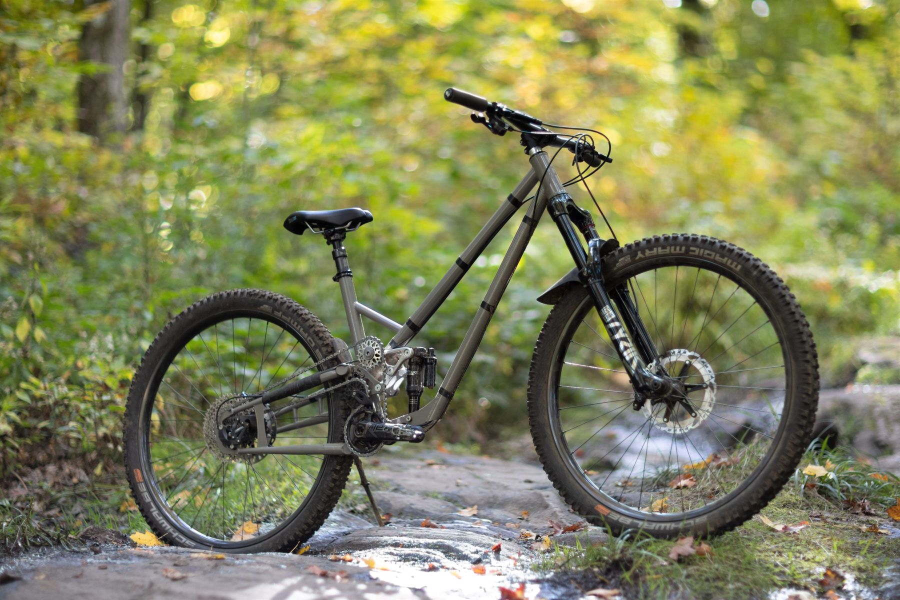 I designed and built two prototype bikes with the Supre Drive. In this announcement, I’m showing the second prototype bike. It has a steel frame and high pivot suspension. I designed and built all of the unique parts, including the derailleur, chain tensioner, idler pulley, and frame. I machined the pulleys and several other parts, I 3D printed many of the derailleur and tensioner parts, and I welded the frame.