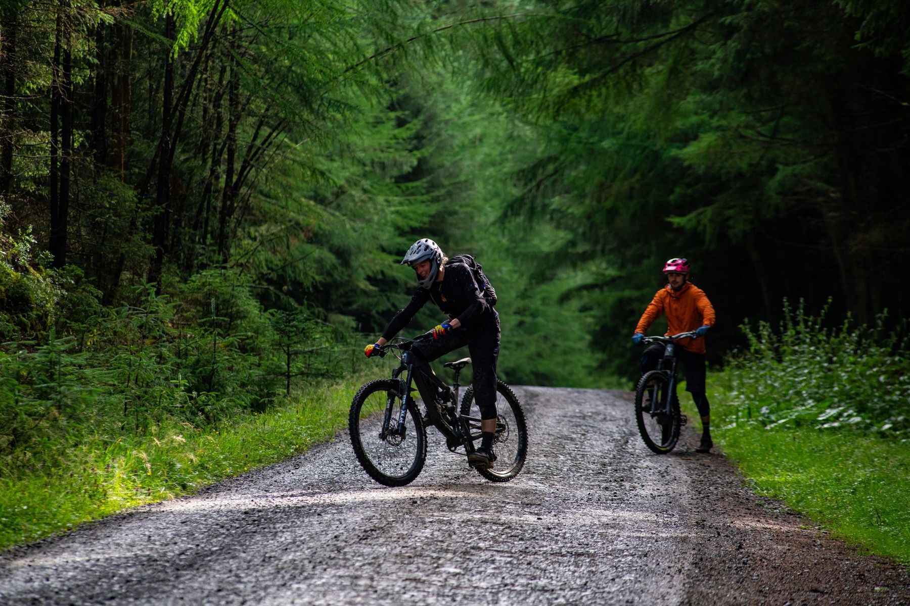 Hot chocolate and coffee finished, and rain converted to rivers and waterfalls, we pedalled our way back up towards Angry Sheep so 23 year old Elliott could hopefully knock some skills back into 42 year old me. ‘Fresh’ off the back of a solid week of riding plus a vomit inducing gym session (yeah, age aside, I’ll leave off any hopes of being a pro rider if that’s the effort and commitment level needed to win), Elliott was spinning his way up on his MegaWatt ebike. The offer of a tow was there, but I figured my old diesel engine was in need of a good warm up. As we hit an especially steep section, Elliott put his hand on my pack and pushed me upwards – a move I perform on my own children on almost every ride home (if you’re planning on having kids, I don’t recommend buying a house half way up a steep hill). Tables turned and me in the role of child, I lost all ability to balance or steer and simply wobbled off the trail, giggling – and panting harder than I had been before the assist. I decided to distract Elliott from thoughts of getting me to the top of the hill quicker by finding out how he’d got into teaching mountain bike skills.