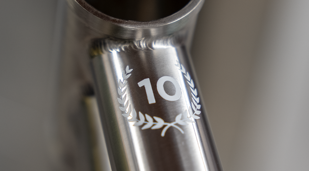 We didn’t want to let the year slip by without marking the occasion so we’ve created something a bit special – the Slackline Ti 10th Anniversary Special. A stunning frame featuring our uniquely-crafted, aerospace-grade, triple-butted Titanium tubing and made that little bit more special with a unique 10th Anniversary decal scheme. Featuring an anniversary decal on the top tube and heritage wrap in white ceramic Cerakote finish (normally a £100 option).