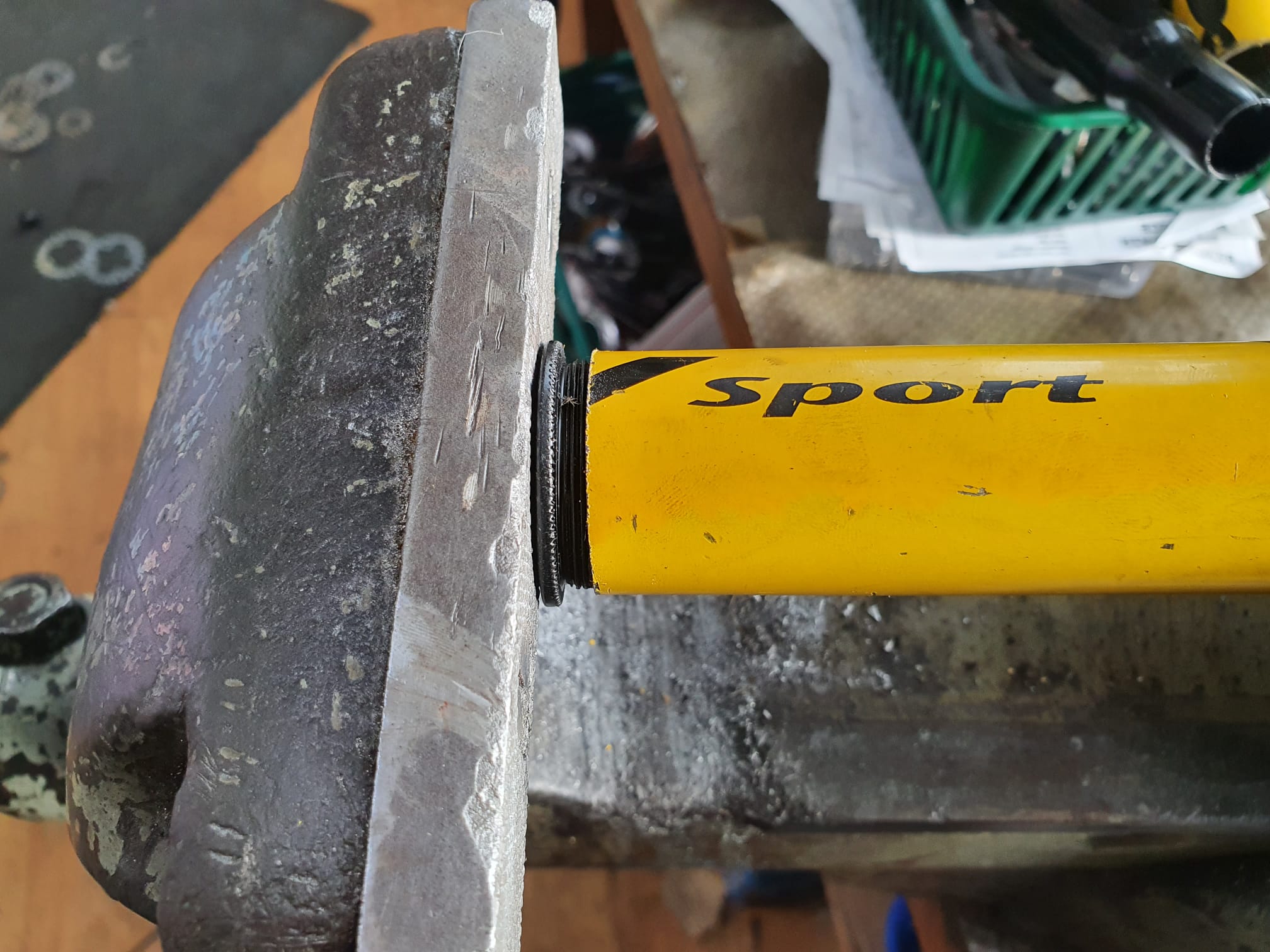 So on my original tree that I made for my mum I’d used a nice shimano hub as a base/tree trunk, if I was going to be ‘mass producing’ the trees I would need another solution as I don’t have an endless supply of hubs to use. I do however have a seemingly endless supply of track pump shafts from a series of broken pumps in the shop!