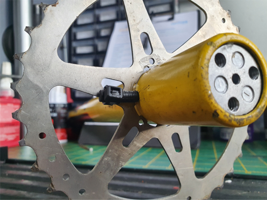 To hold the bottom of the sprocket cluster (or leaves) from falling down the pump shaft (or trunk) I blasted a quick hole through with my drill and then made a nice plug out of a scrap of gear cable with a couple of end caps.