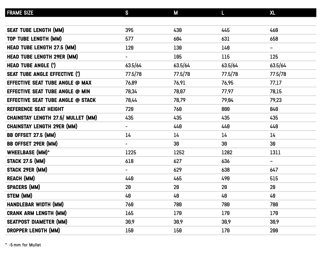 | Wheelsizes | 650b, 29″ | Mullet | Mullet | 650b, 29″ |