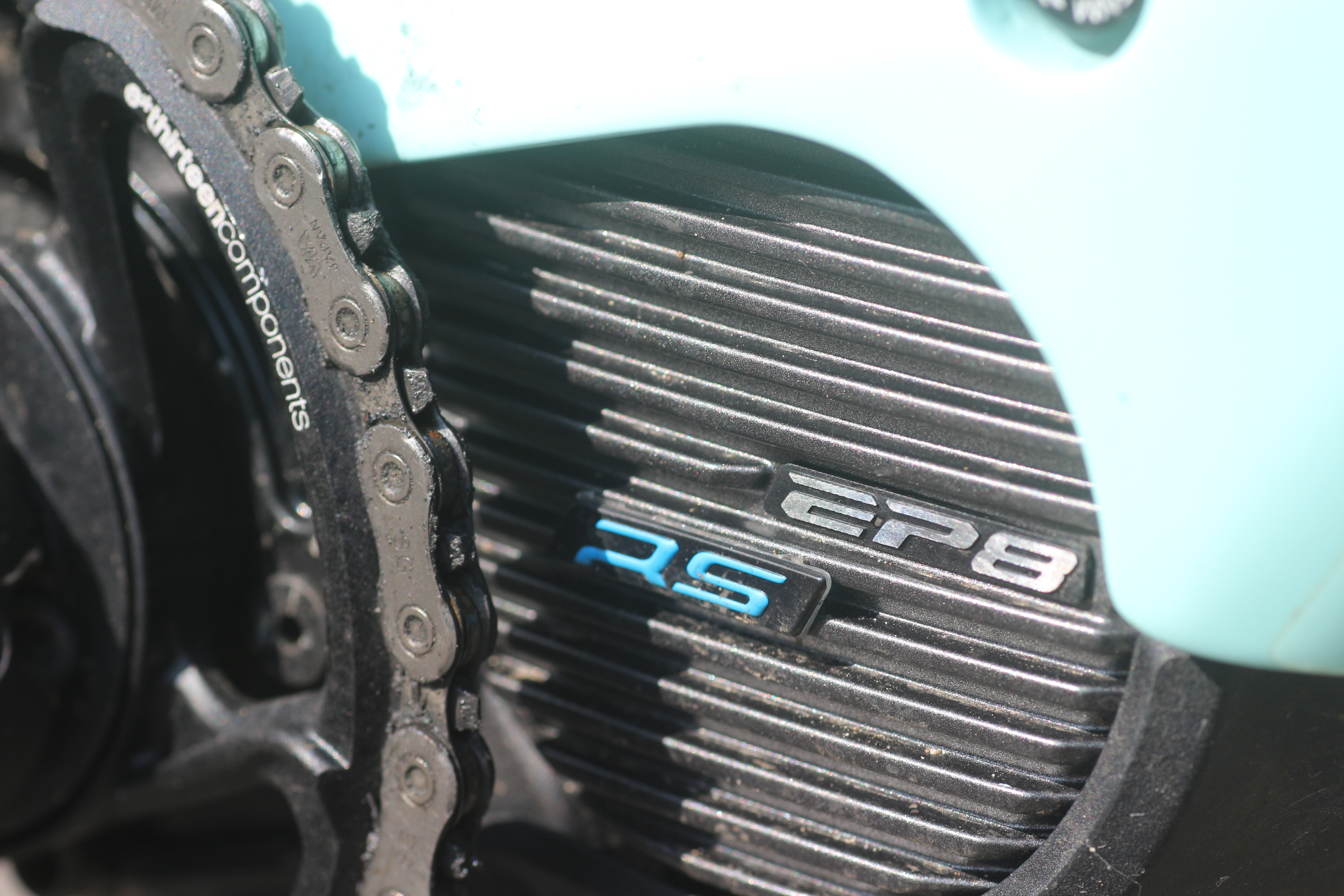 It’s a low fat e-MTB with a full fat motor that has been custom tuned by Orbea to max out at 60Nm of torque. There’s no weight saving to be had by doing that – it’s purely a software thing and I think it’s a stroke of genius on the part of Orbea. For the sake of a few lines of code in the firmware this motor is around 33% less powerful, but the point is that by restricting the maximum power output the bike better matches the battery capacity (you’d burn through 360Wh in no time if you ran it in boost mode at 90Nm) and the weight. In short, it’s a fine tuning of power to weight ratio which I think works perfectly. With a 19kg bike you don’t need 90Nm of power and if you don’t need all that power it follows you don’t need all the capacity of a massive battery either.