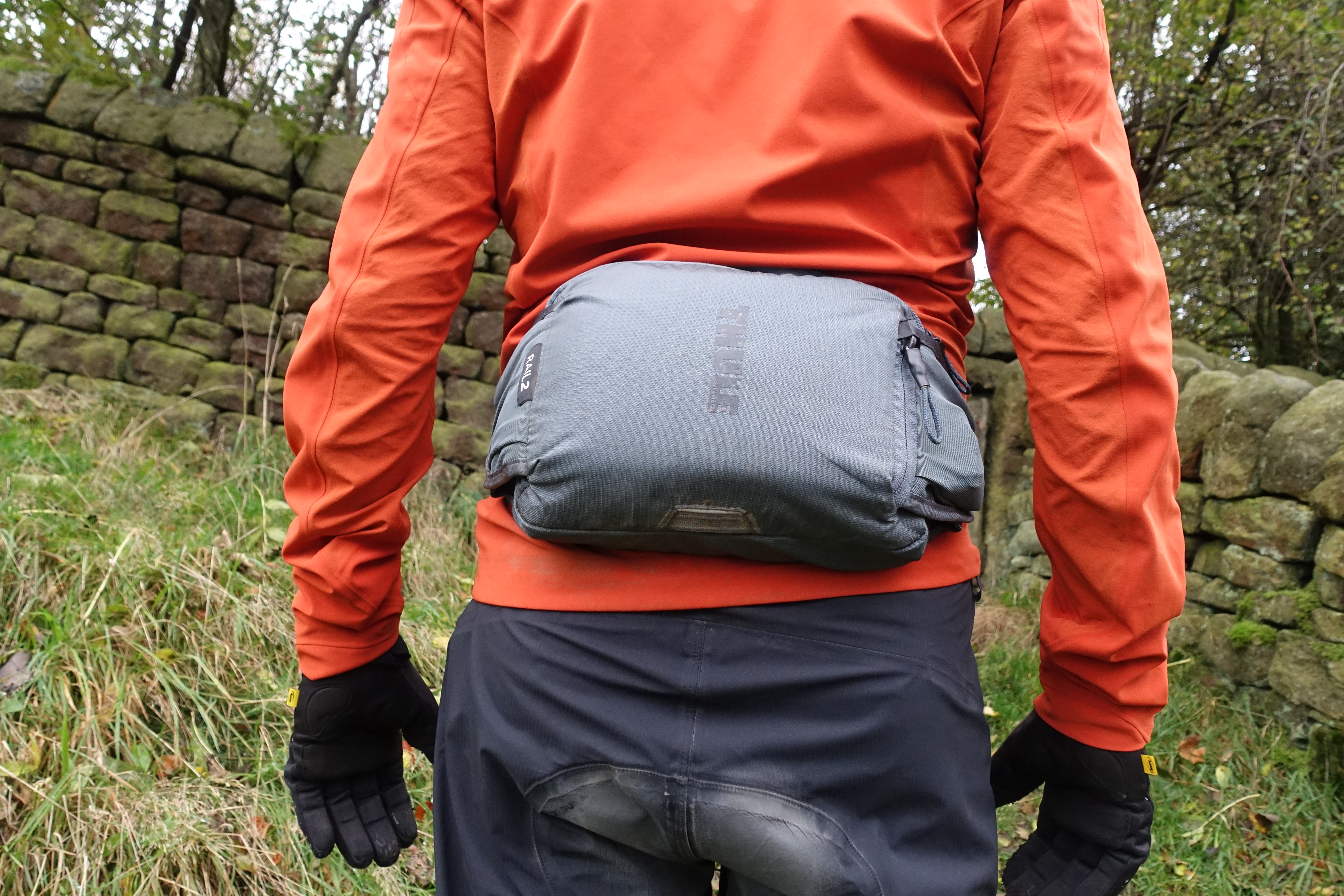 Thule has been making bike bags for a while now, and it seems that this pack has distilled a lot of knowledge into what riders actually might need in a hip pack. The 2L sits in the middle of the range, with the 4L accommodating a water bladder and the 0.5L only having room for a credit card and very slim snack.
