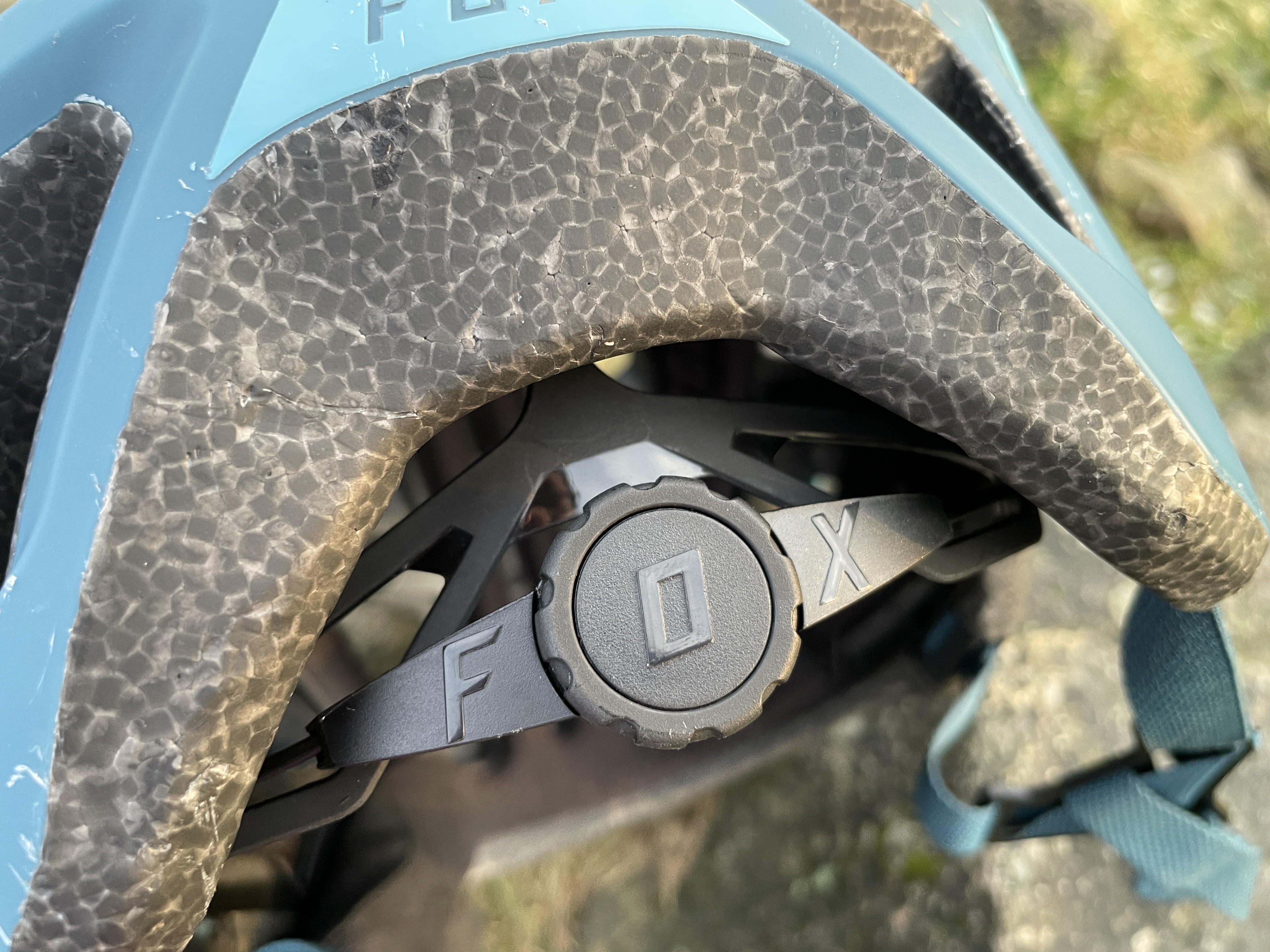 The Fox Mainframe is constructed from EPS foam with a hard outer shell. As with many budget helmets the shell does not full encase the EPS, leaving it exposed around the edges – so take a little extra care not to accidentally dint the foam. The helmet is fitted securely via a dial and flat plastic cradle that tightens as you turn the dial. At the back of the helmet you can adjust the height of where the cradle sits.