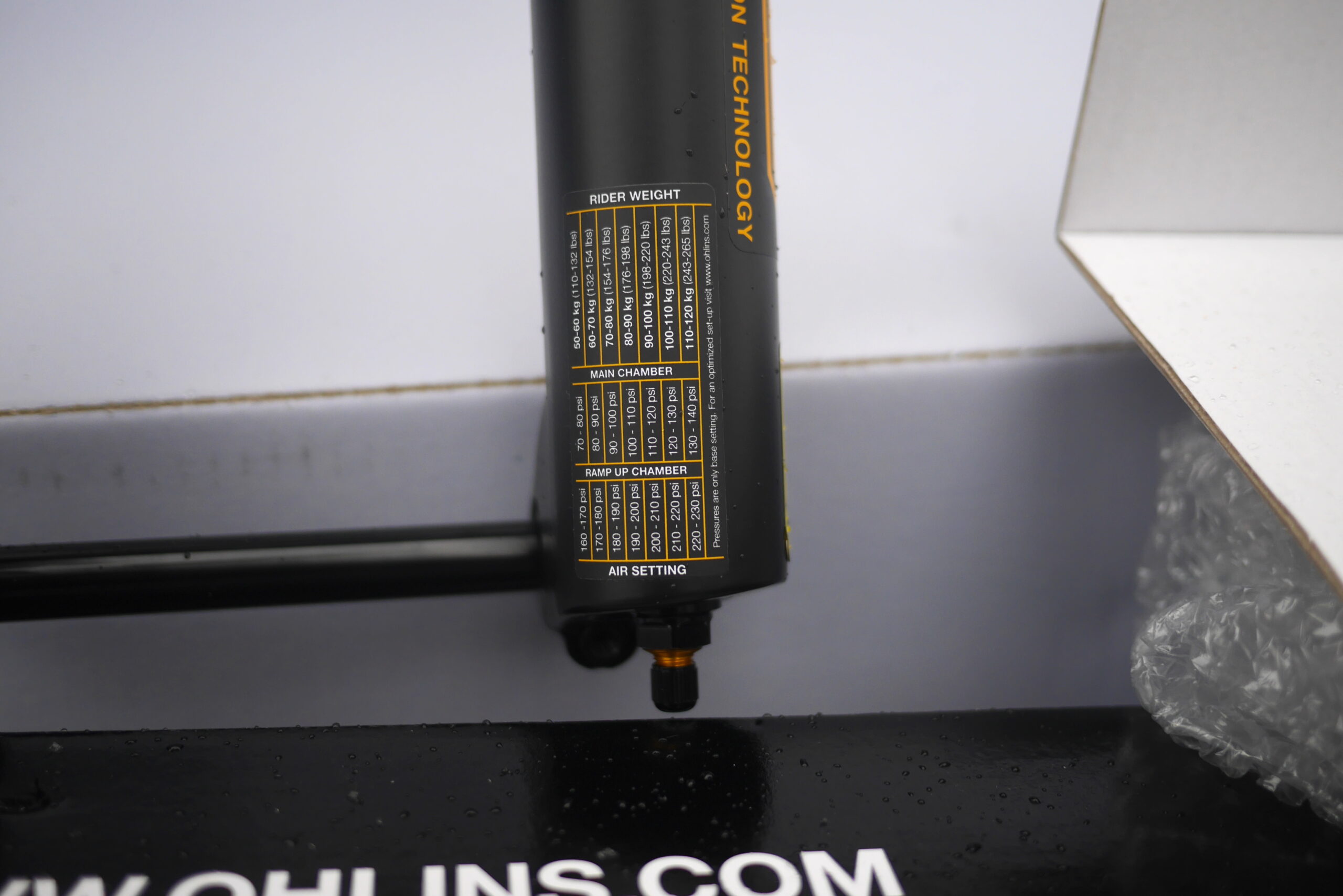 Öhlins: “TTX18 damping system. Independent cartridge air spring and damper systems. Air spring adjustable to 160/170/180 mm of travel. Easy to tune three-chamber air spring system. 38 mm stanchion diameter with both 44mm and 51mm crown offsets. Floating axle design to minimize friction. Approved for eMTB use and available with eMTB compatible crowns. Compatible with maximum tire sizes up to 29”x2.6. Compatible with maximum rotor sizes up to 220mm, optimised for 200mm. Axle to crown measurement: 583mm @ 170mm stroke. Weight: from 2320 grams.”