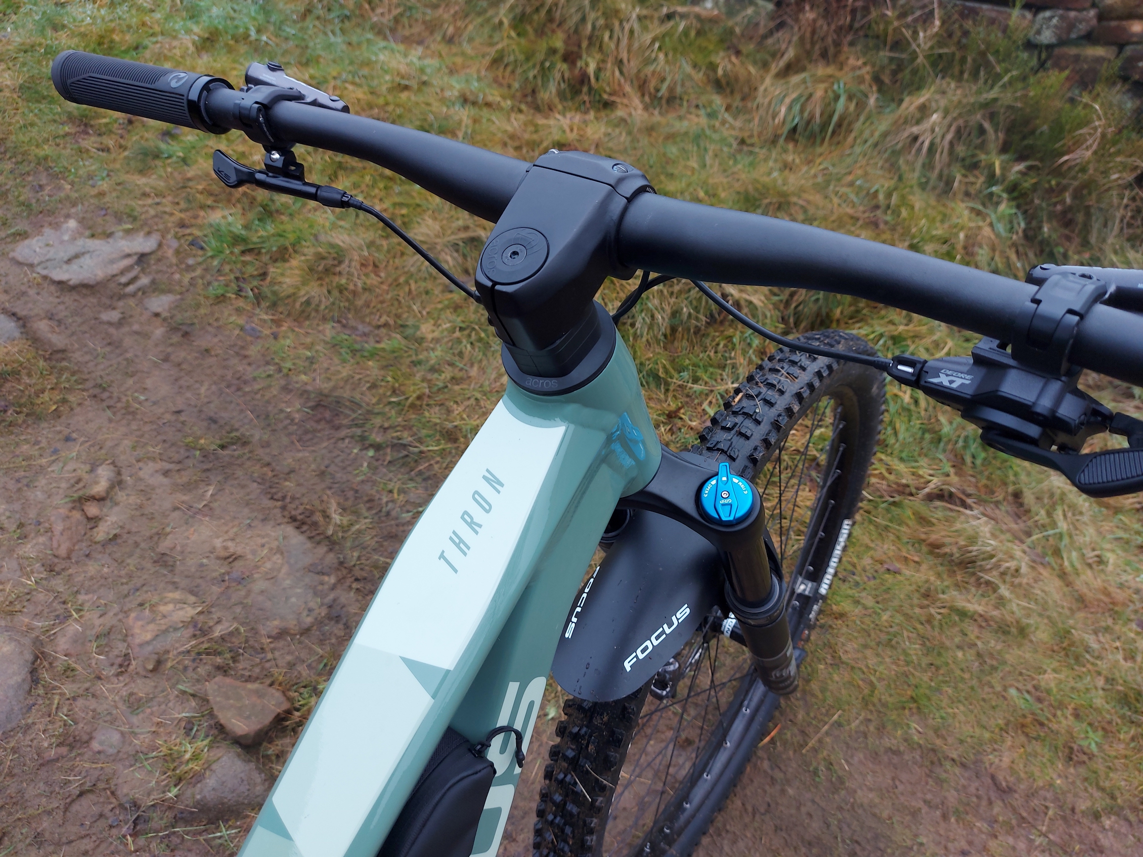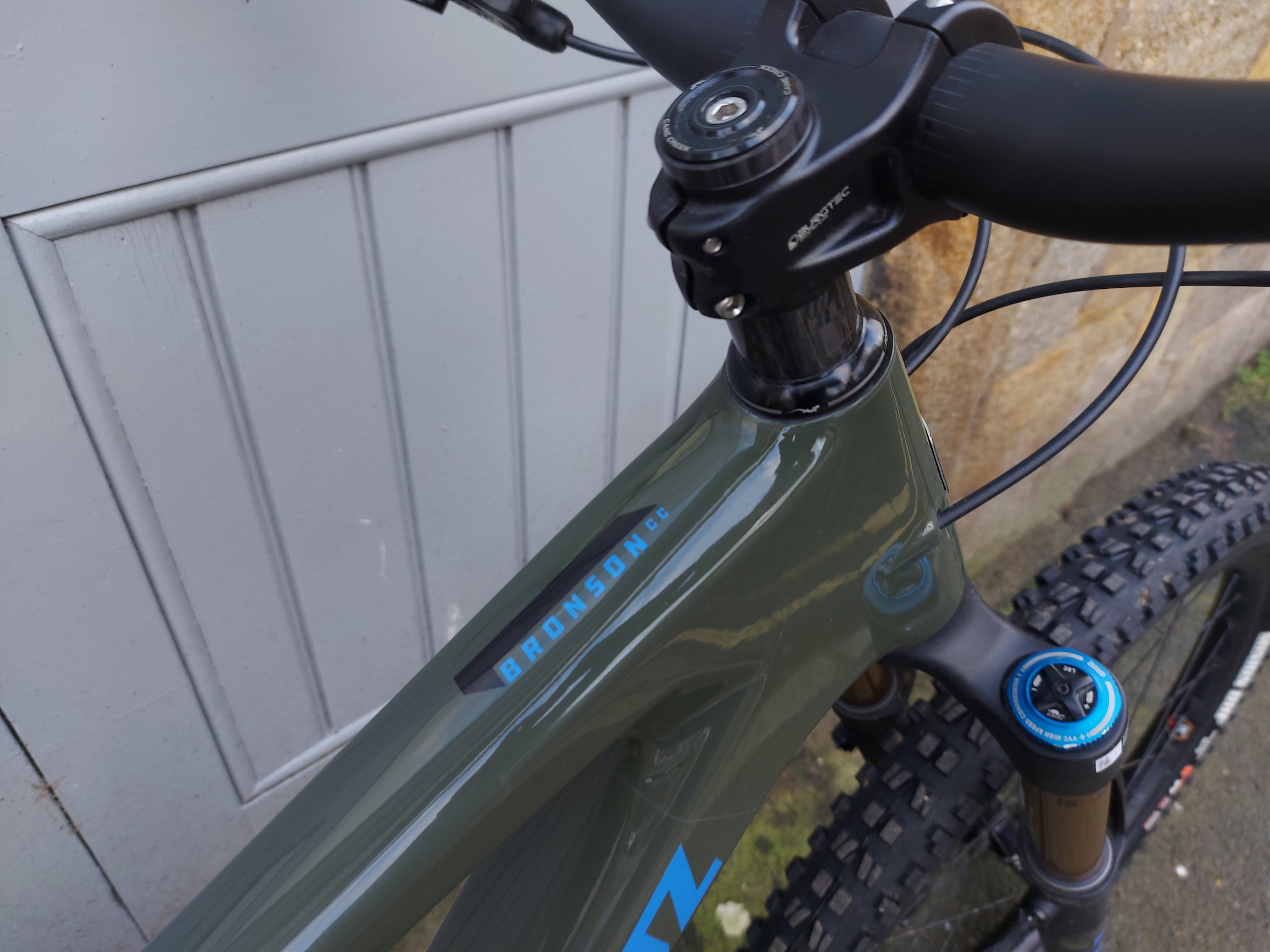 The most outlandish thing on the Thron is that CIS stem. In our experience, it does make for a quiet cable routing but it’s not something that we’d like to have on our own bikes really. Contrary to what some may say, you aren’t stuck with this stem design. You can put any normal stem on there… once you’ve got hold of a replacement headset top-cap form Acros (Focus UK can help you out) and you will have to re-string your gears, dropper and brakes. So not ideal but far from being CIS-compulsory.