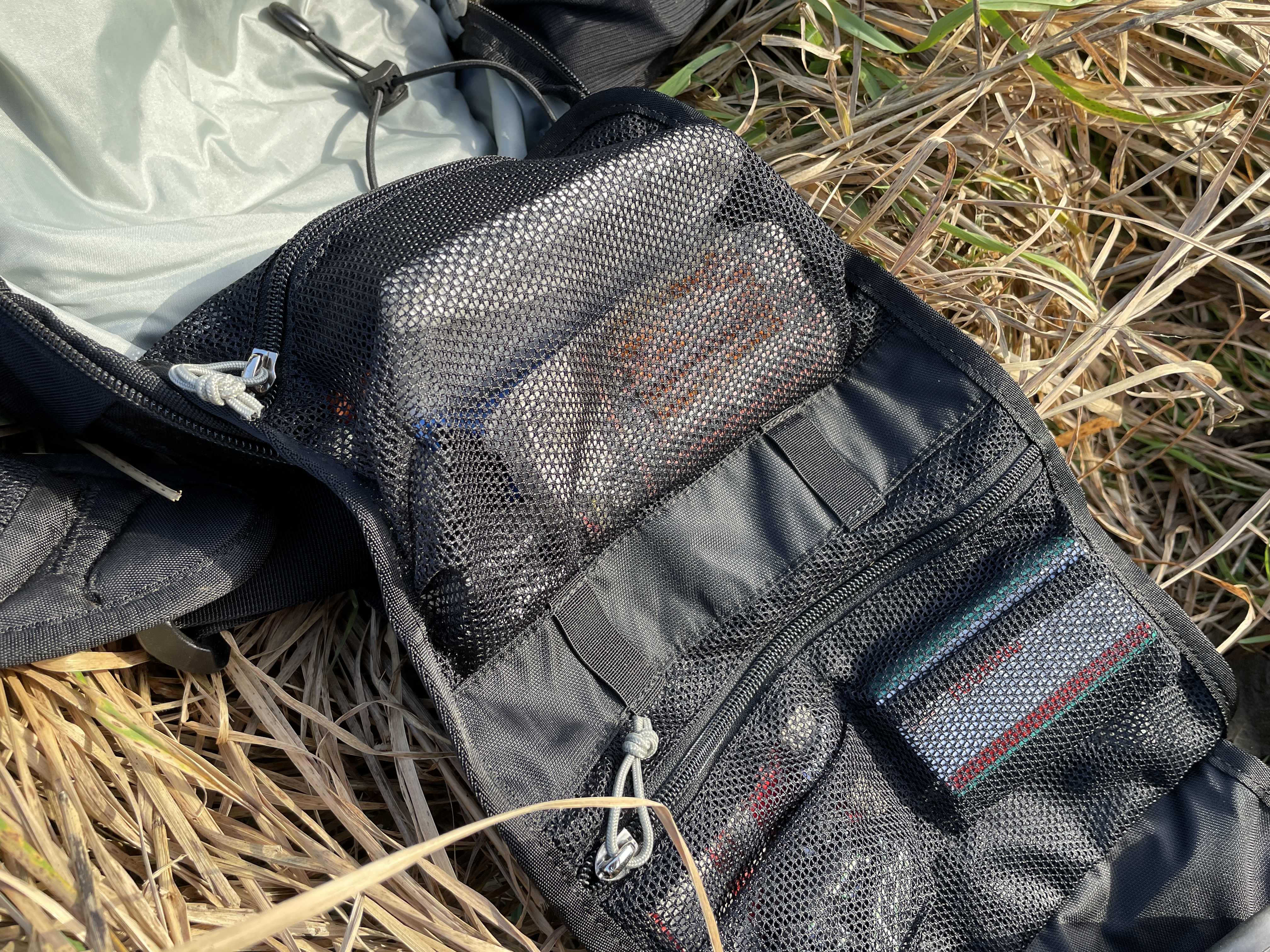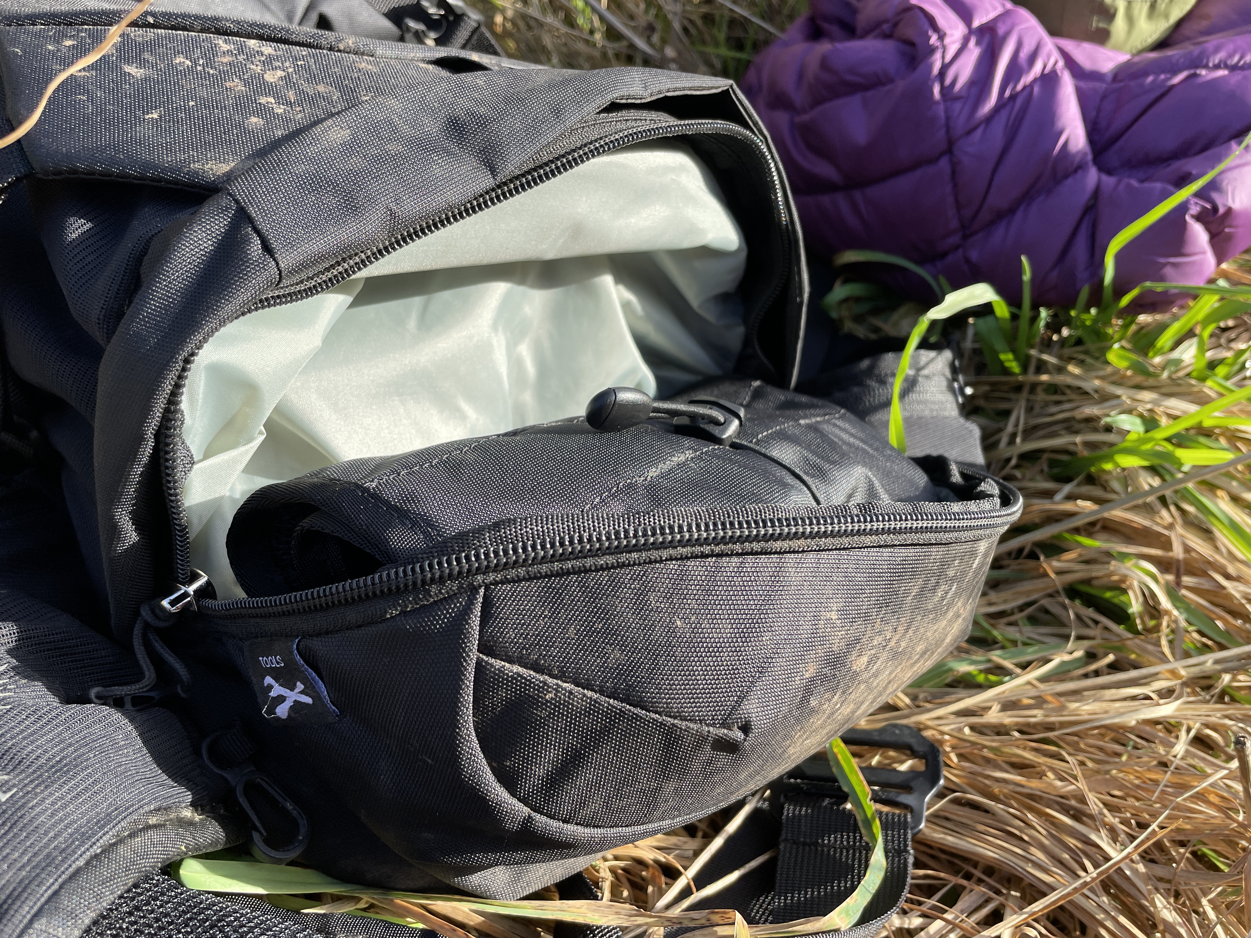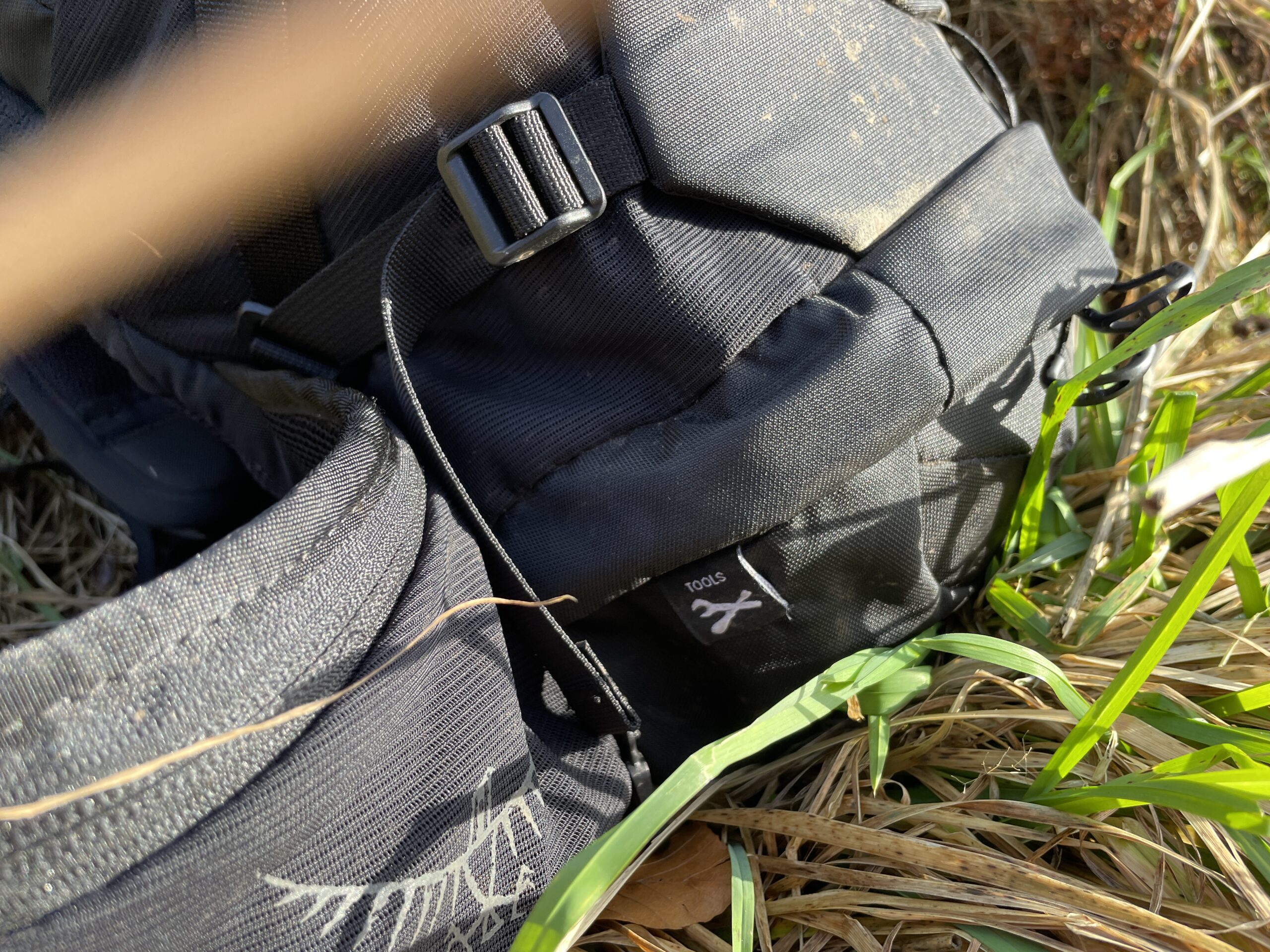 It seems like a nice idea having the separate tool section at the bottom of the pack, however I found that this meant I did actually need to remove the pack in order to get to my tools. In a normal pack I’d quite often just slip my shoulders out of the straps, turn the pack around on my waist, fish out what I need and then twist the pack back into position. If you’ve used the bottom tool storage section, you can’t do that with this pack, and so then you have to undo the waist clip. Which as I’ve already said, I found fiddly.