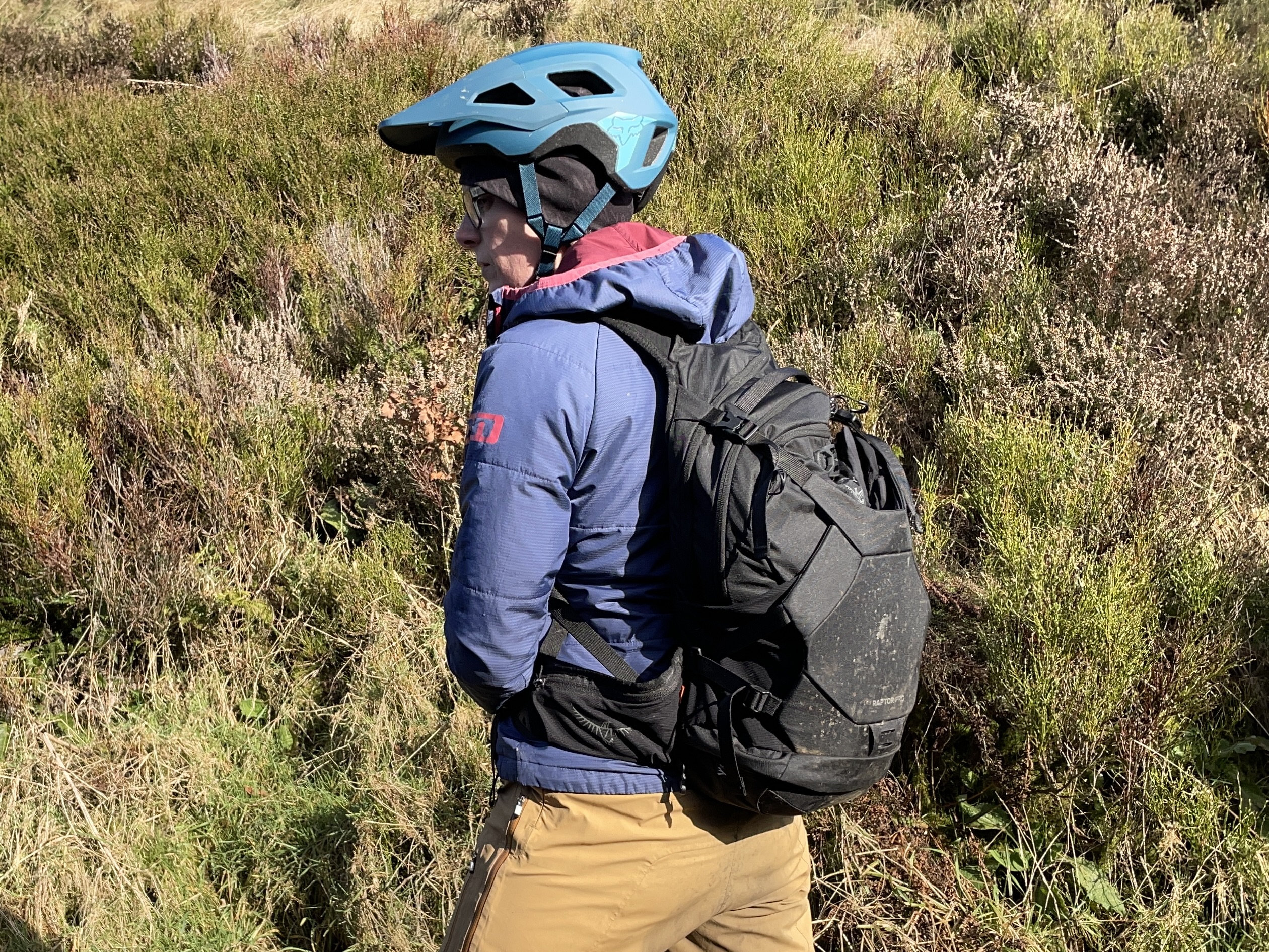 All in all, I’m unconvinced that the layout of this bag is much more accessible and easy to navigate than having multiple pouches inside a main section, as offered by my Evoc and Camelbak packs. The helmet and pad carrying space is good, and the bag stays in place well, but for me the layout and fastenings result in a bag that’s difficult to use in a rush. It’s a bag I’d perhaps consider for a big mountain stage race akin to the Trans Provence, but for trail rides where you’re likely to want to dip in and out of your pack I think there are better options.