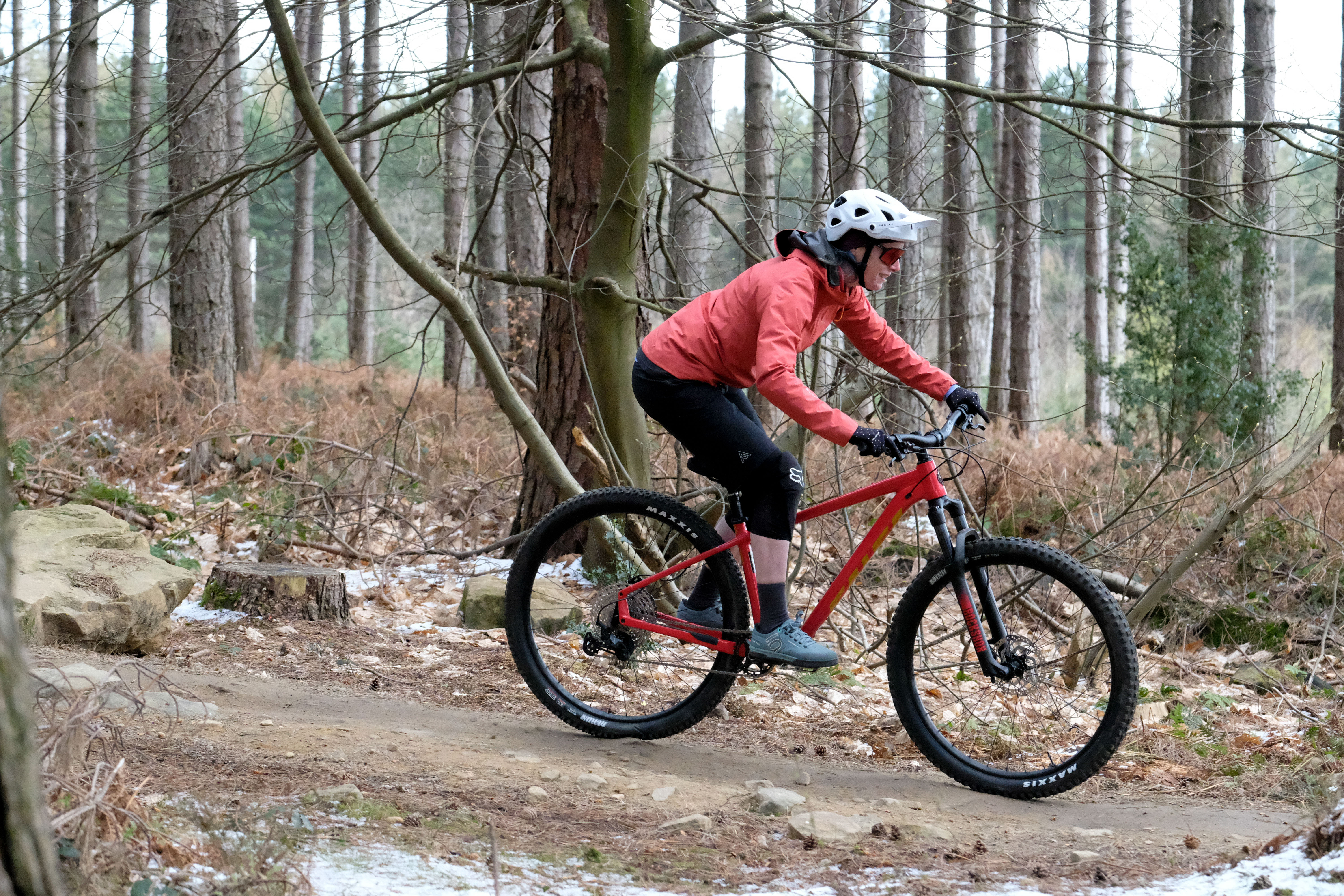 Our GX-built bike is one of the more affordable builds in the range and because it has been built to such a low price point, the components do begin to struggle when you really push them. The fork is very basic with a linear feel to it, and it quickly becomes overwhelmed when asked to absorb hit after hit. Personally, I’m not a huge fan of 2.6in tyres, and although they do add a degree of comfort, I’d much prefer a narrower tyre for a more engaging ride and lower rolling resistance. However it’s all usable kit, and with such a versatile frame the Timberjack does have the makings of a great jack of all trades.