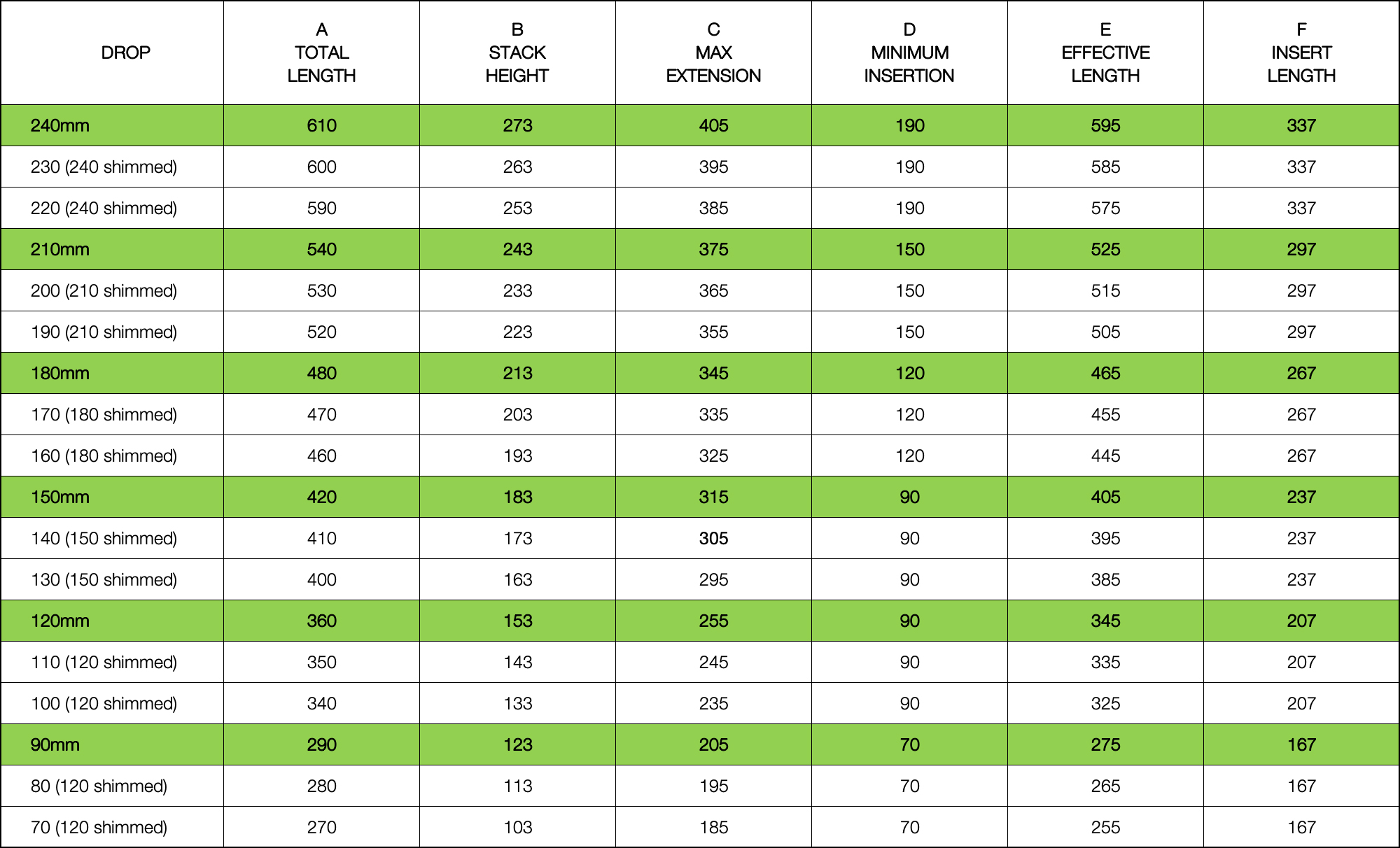 The new 90mm (shimmable to 70mm) Dropper is the shortest dropper post on the market. It has the shortest total length, shortest insertion length and shortest stack height.