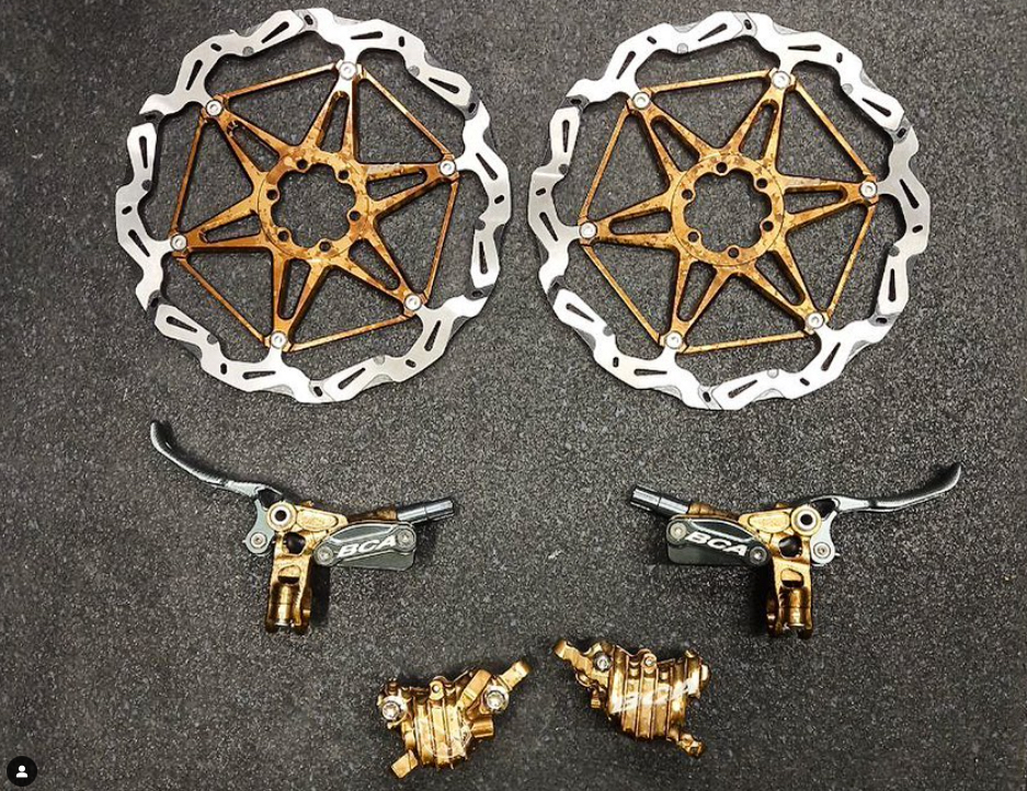 Readers not distracted by the ridiculousness of the Grigna above may have noticed it is sporting some interesting looking brakes and rotors. Well I did a bit of digging and came across @hightechbcaperformance who produce these, seemingly unnamed, brakes.