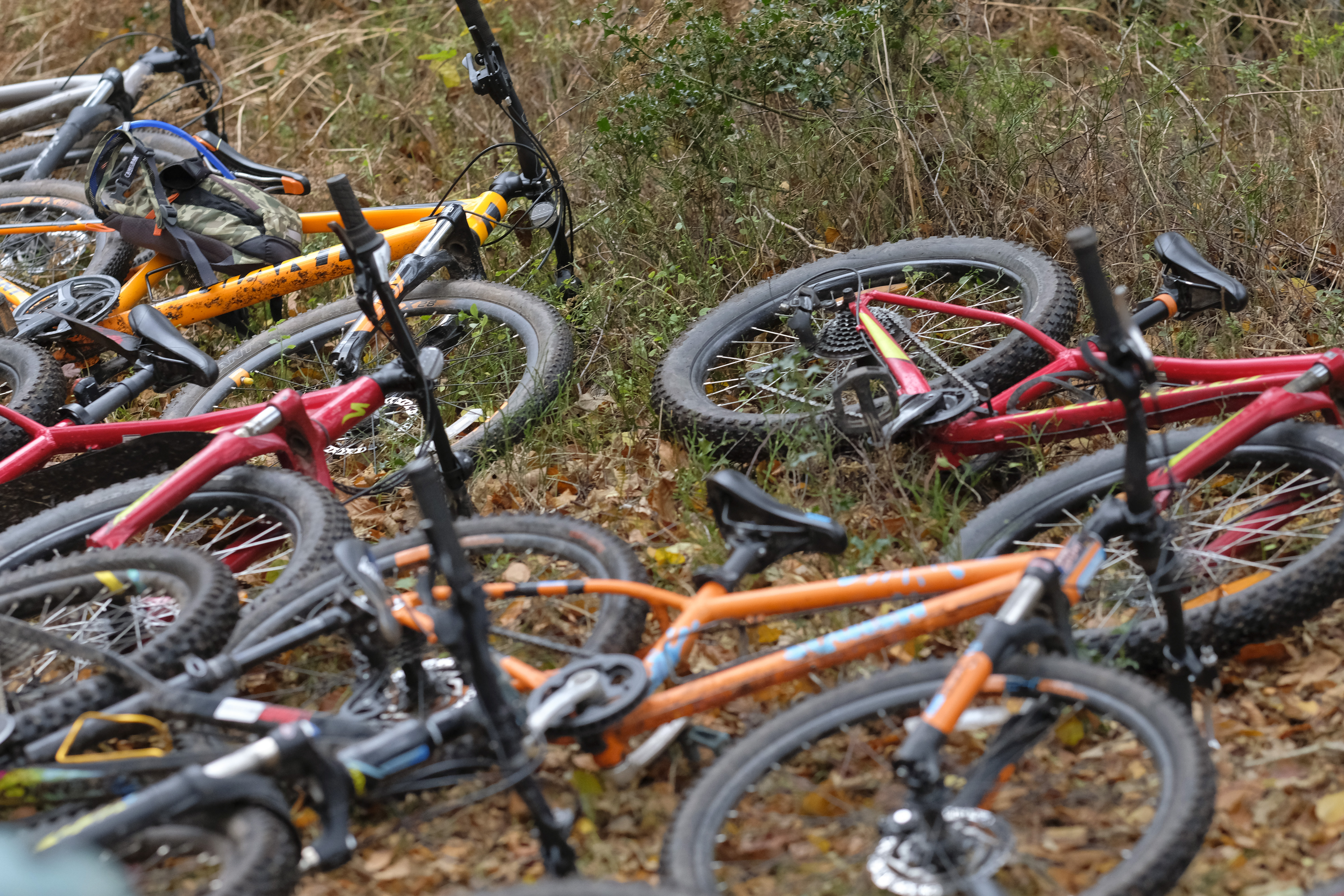 As we regroup back in the car park, Alicia’s group is being kept busy with a number of well-practised drills as the riders circle the gravel lot. She calls out random commands and the children instantly obey: “Low Bridge!” has them hanging off the backs of their saddles, avoiding an unseen obstacle, but also learning how much you can move around on a bike. “Wave!” and the riders are unconsciously practising circling while controlling the bike with one hand. As well as keeping them warm, they’re soaking up trailcraft and bike skills without even knowing it.
