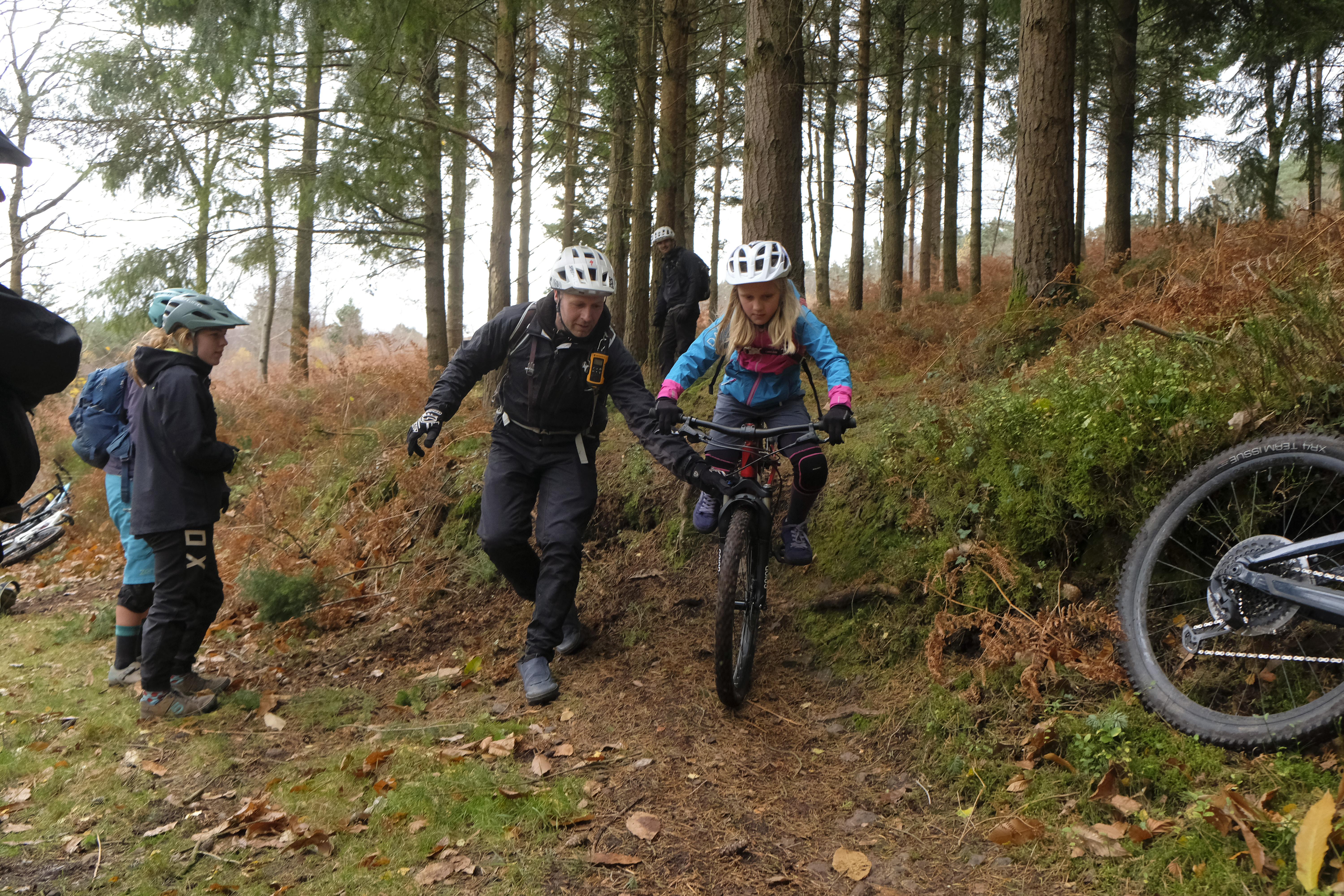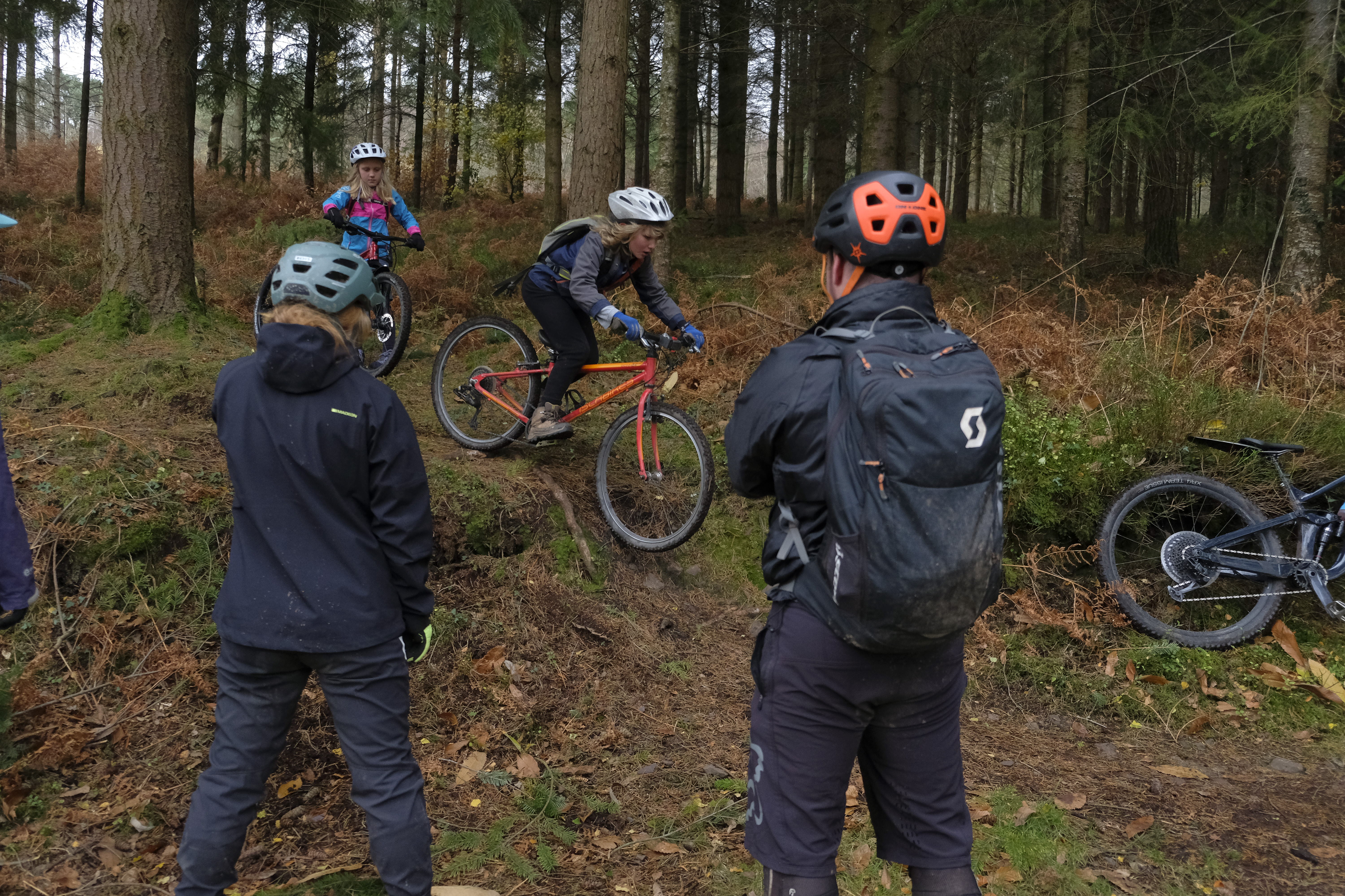 While I was still being sad about my underwhelming choice of trail snack, it was time to ride again and this time the trails took on a steeper, slipperier turn for the Reds and Blacks. A long blast from hill top to valley bottom followed, with riders (and even some of the leaders) whooping with happiness, excitement and the odd dab of fear. I saw one youngster follow her peers down a slope and then, as they flailed down the bank at the end, she simply declared ‘Nope’ and calmly turned round and went the less sketchy way instead. Lessons are obviously being learned.
