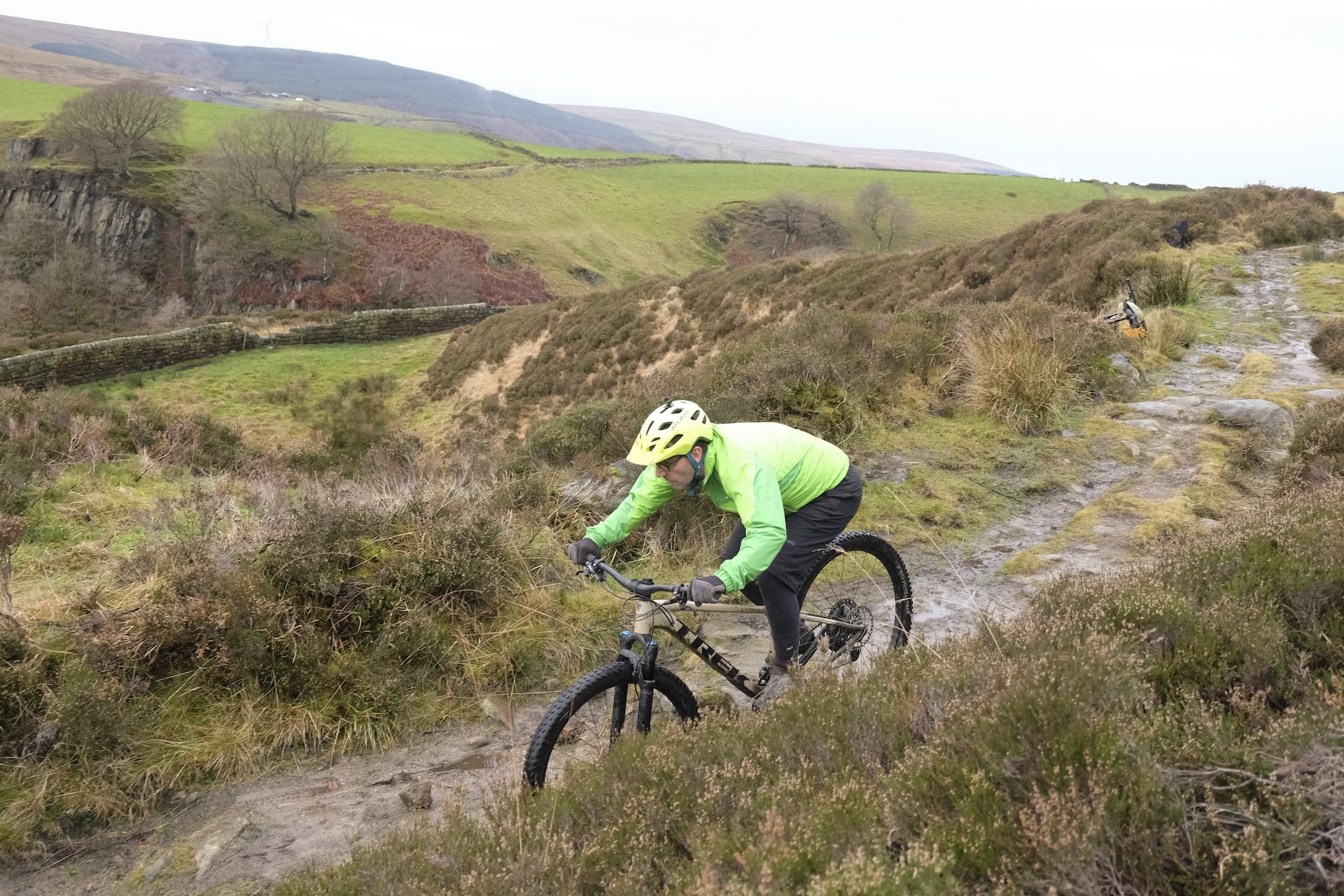 If the geometry and overall burliness of the frame left any doubts as to the gnarly intentions of this bike, those can quickly be dispelled on consideration of the rest of the spec. It’s not unusual for trail bikes at around the 140mm travel category to opt to save some weight with 34mm forks so it’s good to see that Trek have resisted this with the addition of the thicker and stiffer Fox 36 Rhythms. Combined with the 30mm internal Bontrager Line Comp rims and bulky 2.6in XR4 tyres, the rider is left with little doubt that this bike wants to be ridden hard. All this meat does come with a weight penalty however, and at 13.9kg this can hardly be called lightweight for a hardtail. That really shouldn’t matter though for a trail bike which is clearly aimed at the more aggressive rider, and thankfully Trek seems to have considered this with the addition of the higher power four-pot Shimano M6120 brakes, and a twiddly 30T chainring to winch you to the top of the hill.