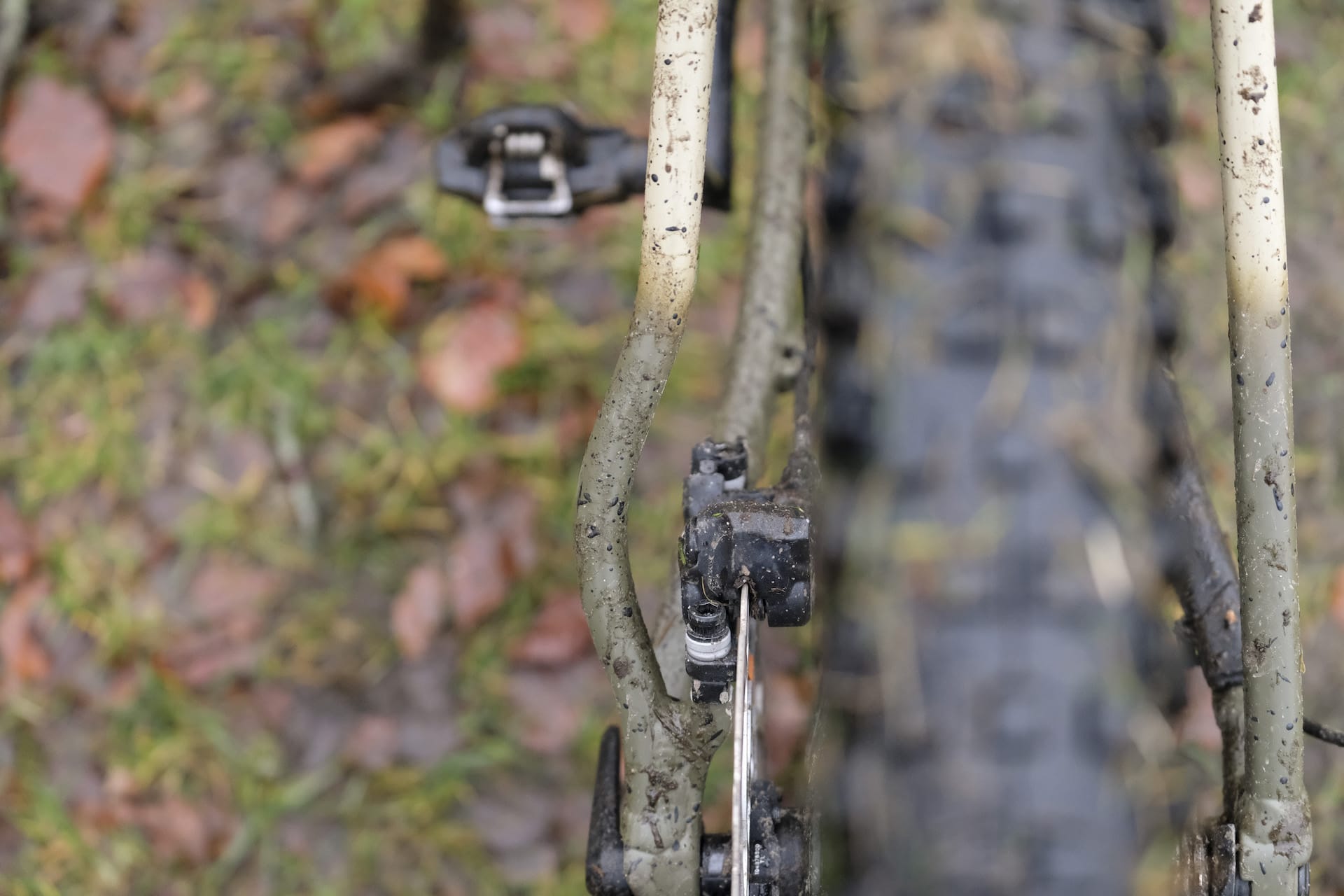 The frame itself is something of a beast. The oversized downtube and thick rear triangle provide a stiff and supportive base for ploughing through rocks and roots and maintaining control through the roughest of terrain, although this suggests the rider will need to cope with the physical demands of such a direct and unforgiving platform. If this isn’t a problem though and you’re up to the job of pushing the Roscoe to its limits, then the double side chainstay and downtube guards provide protection from flying rocks to prevent any damage. The rear brake caliper is also partially protected by what can only be described as a rather radical bend in the left chainstay to enable the caliper to be placed on the inside of the frame, although this does raise the possibility of interference with pedalling at the rear of the stroke. There was just enough clearance with my size 9 shoes to avoid any unwanted impacts or rubbing, but larger-footed riders might want to check this out.