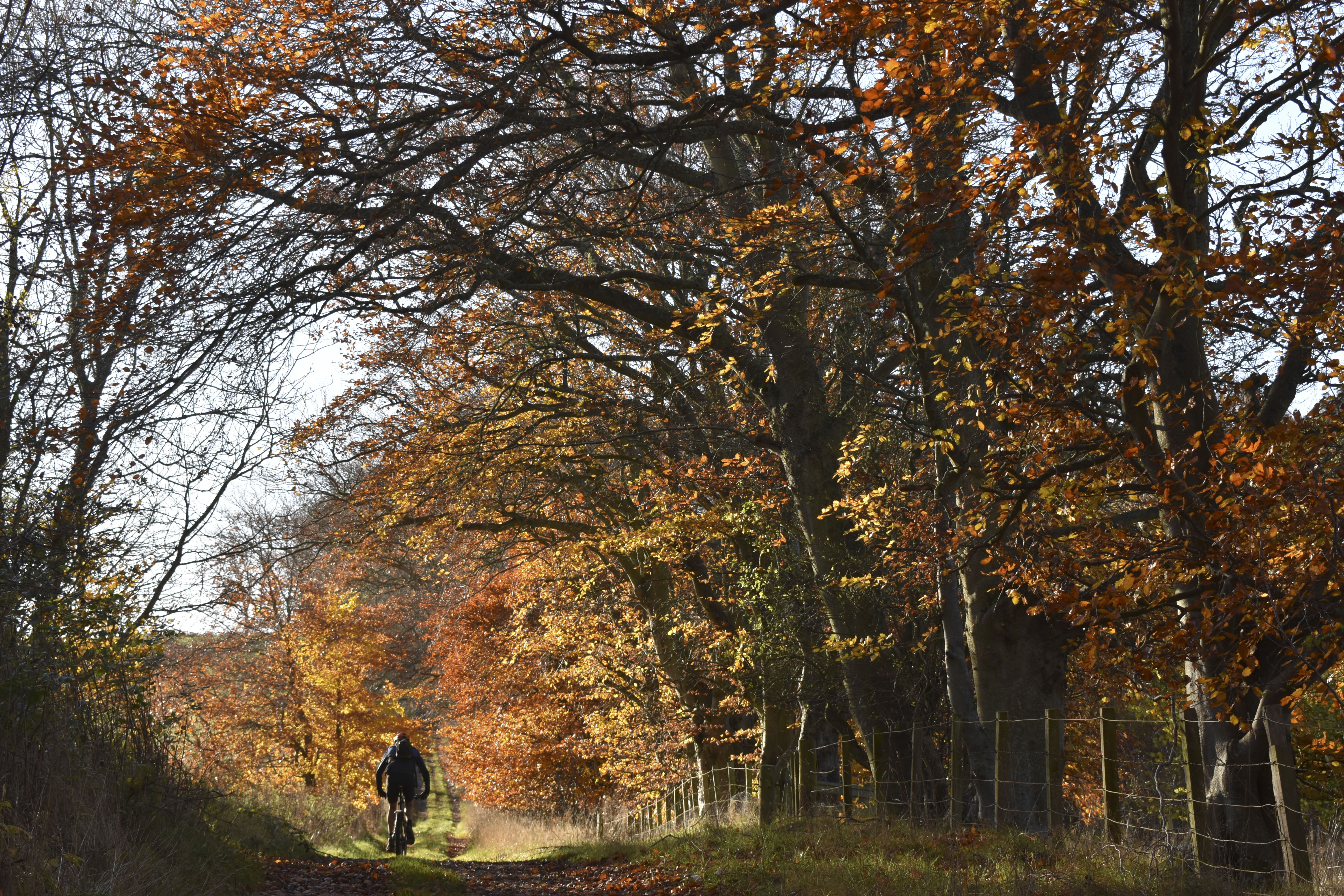 A crisp and clear November day forecast, I attempted to round up some of the old gang, but with Pete stricken with the flu and Shearer racing the Scottish cyclocross champs the next day, I drew a blank. However, ever adventure-ready, Dave the Bastard was keen to join me having never ridden there before. Opting for a pre-dawn start, we found ourselves sticking a metaphorical two fingers up to Glentress and Innerleithen as we made our way down the A-road that snakes its way along the valley. Today was going to be the polar opposite of them – forget the pervading oppressive monoculture of commercial forest plantations, our ride would be all about variety and vivid autumnal colours.