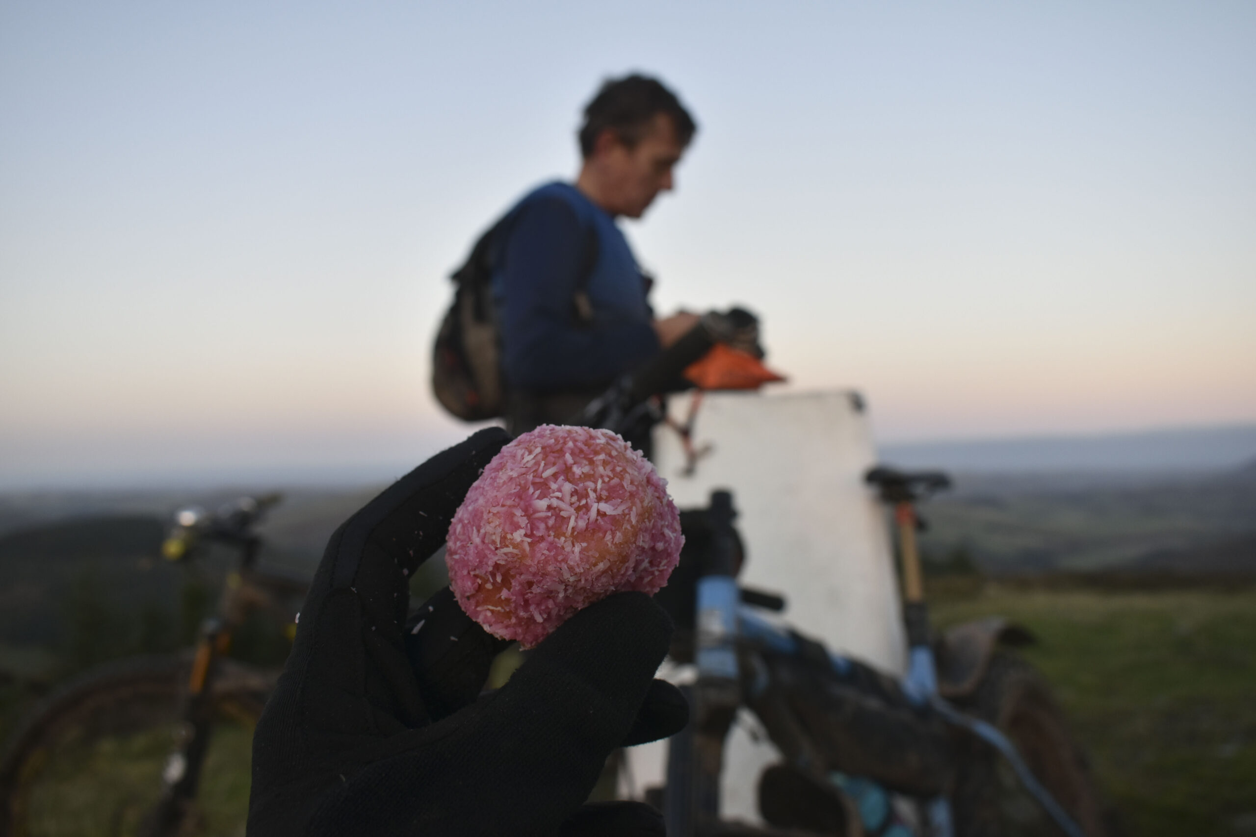 Like Selkirk, Melrose is a prosperous and thriving small town and, as luck would have it, is home to Hardies Bikes. Although they were just closing up and about to head out for a ride, the guys in there were happy to help Dave reinstall his granny ring. As they did so, we chatted about the thriving local riding scene and how it compares to further up the valley. Fair to say they weren’t backward about singing its praises and on this showing, it was hard to disagree. Ring issue resolved, we managed to ride all of ten yards before having to stop at the confidently named ‘Simply Delicious’ ice cream parlour. Now I don’t know about you, but when I see such names my instantly lowered expectations are rarely met. Why not just call them ‘Pret-a-bit-mangey’ or ‘Not so bright a star-bucks?’ Thankfully, this case was the exception. A single nugget of strawberry and biscoff ice cream hit the spot while Dave followed it up by proffering a curiously named, but utterly delicious Jammy Joey. Sporting the kind of food colouring that is probably banned in several European states and which would give Jay Rayner conniptions, it made for the perfect mid-ride comestible.