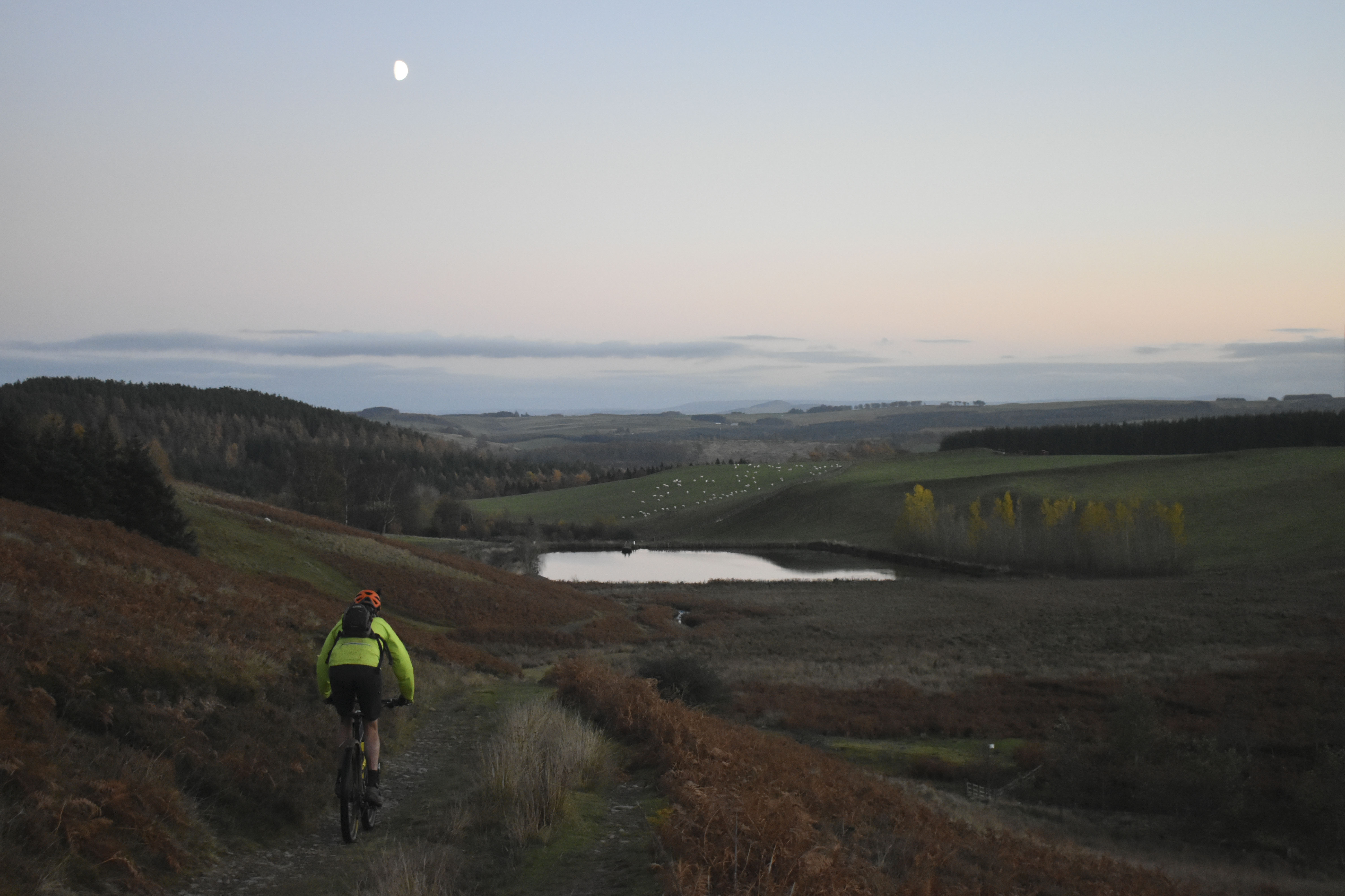 We still had the final fast descent to Selkirk to enjoy in the gloaming. Tyres pumped to avoid pinch flats, the open nature of the track’s expansive views ahead would let us race down it without fear of happening across an unsuspecting walker or errant sheep. Known locally as the Corby Linn, it is neither technical nor particularly challenging, but boy, is it fun. As we descended, I would make the mistake of telling Dave that I had a Shania Twain earworm playing in my head. His somewhat fruity alternative version of the song that he made up on the spot would have me nearly falling off from laughing so hard. Kev would have approved.