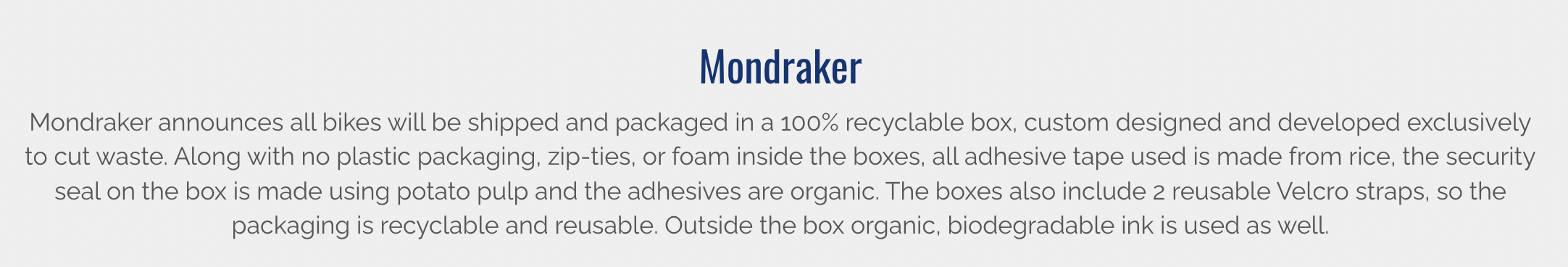 Although it takes less than a minute to join the signatories with just some business contact details and a logo (I know, I did it for Singletrack). Mondraker do appear to be taking things seriously on the face of it with links to commitments and information about how they are tackling the problem of packaging on their website.