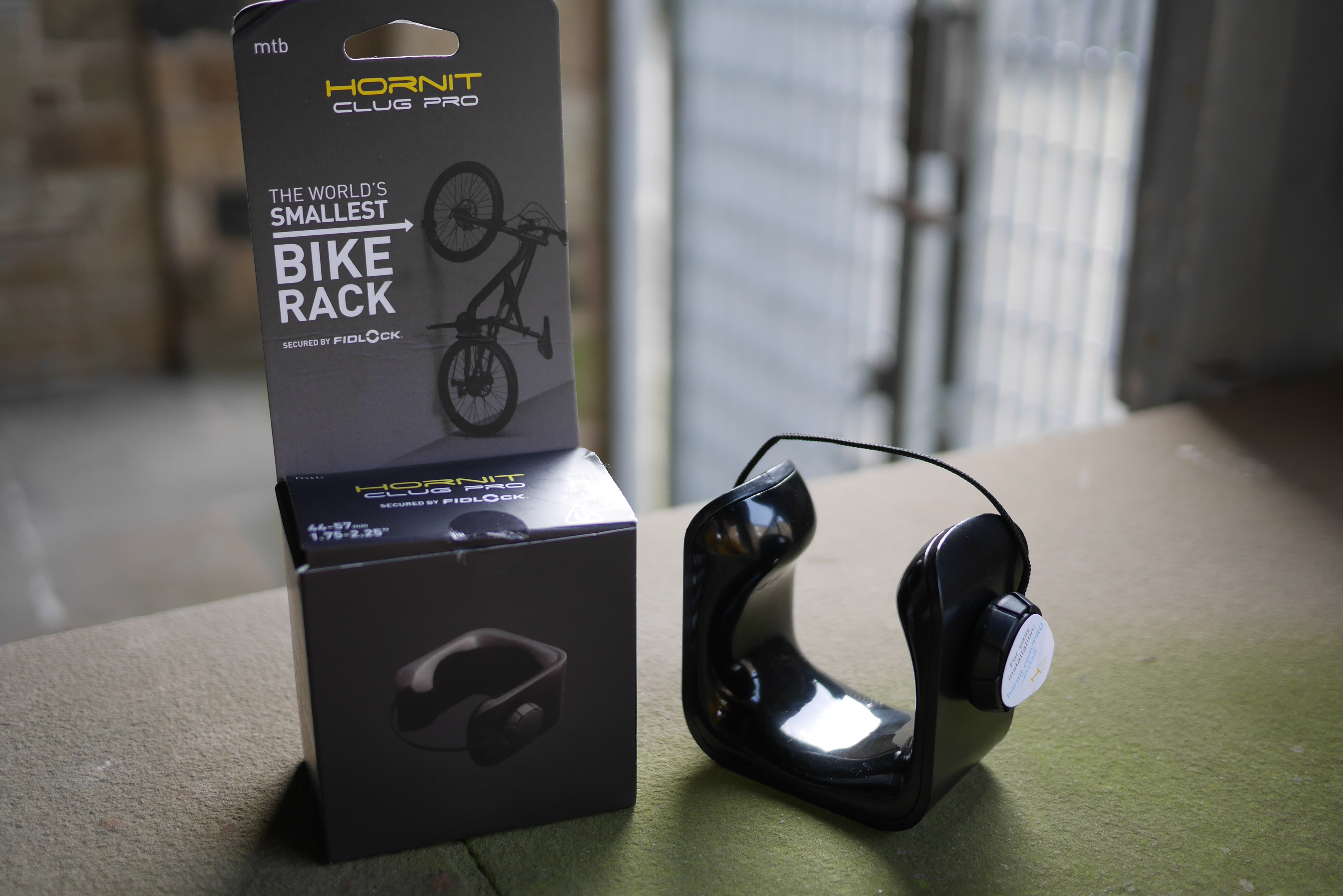 The world’s smallest bike rack, apparently. It certainly appears so. Designed in collaboration with Fidlock, the Clug Pro utilises a magnet and ratchet system to hold a bike in place. Either via the front wheel if storing vertically/upright or via the rear wheel if ‘reversing’ the bike into it and keeping both wheels on the ground.