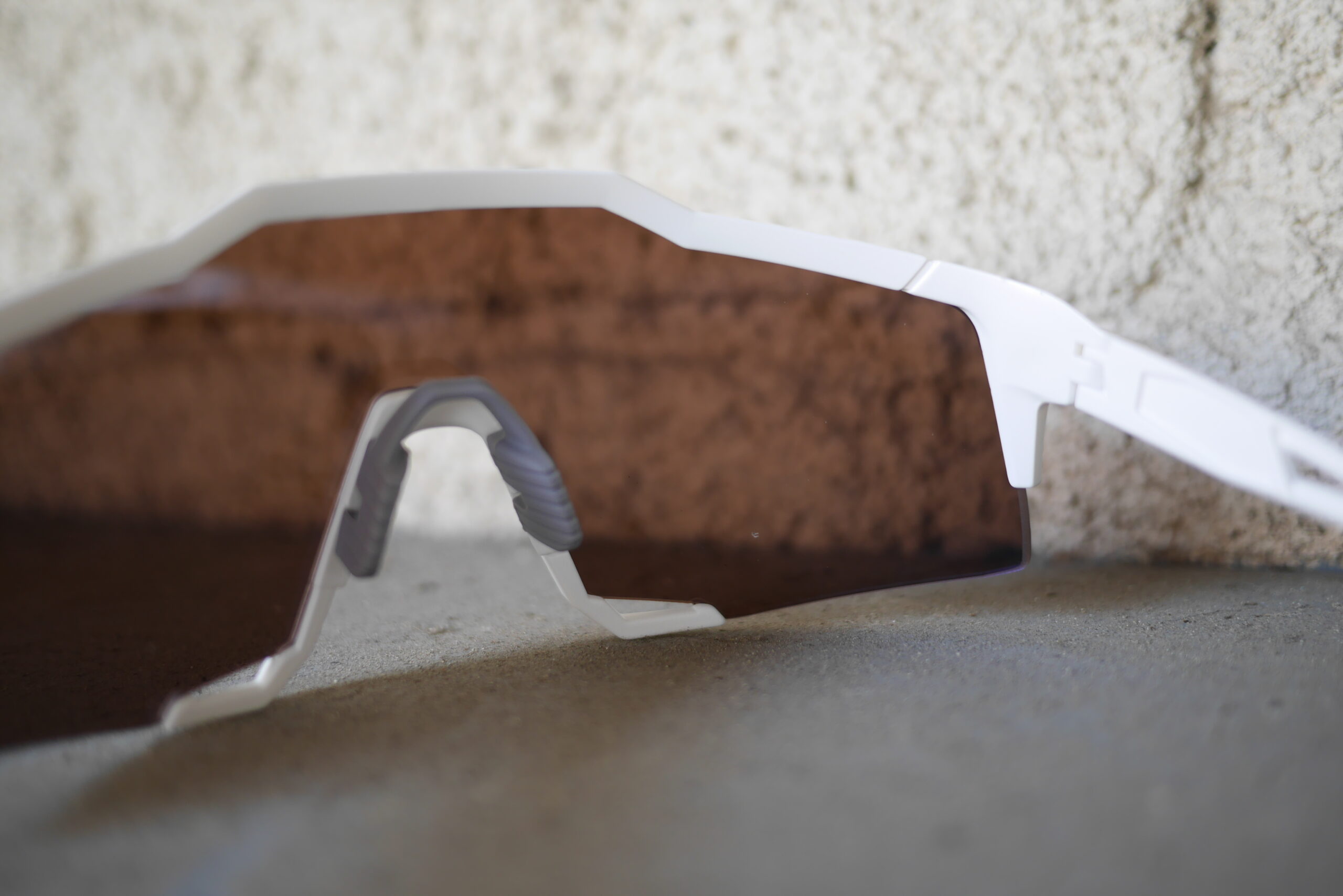 Ultra-grip rubber nose and temple pieces. Lower air scoops for ventilation. Massive lenses. Grilamid TR90 frame for a bit o’ bendiness.
