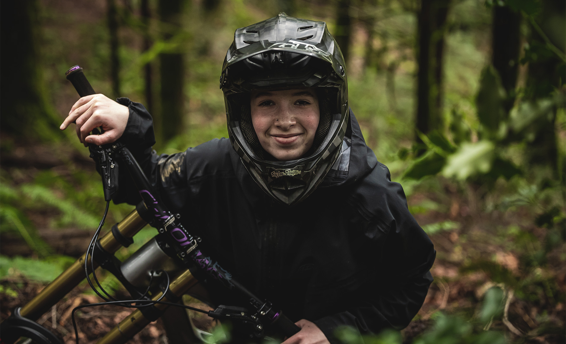 “At 14 years old Maxima is already experienced in between race the tape. Coming from Leutkirch in Germany, Maxima’s results include 1st at the IXS Rookies Downhill Cup, 2nd at the European Downhill Championships, and 1st at the Crankworx Innsbruck Dual Slalom. No stranger of the bike park either, Maxima can already throw down suicide no handers, so watch this space!”