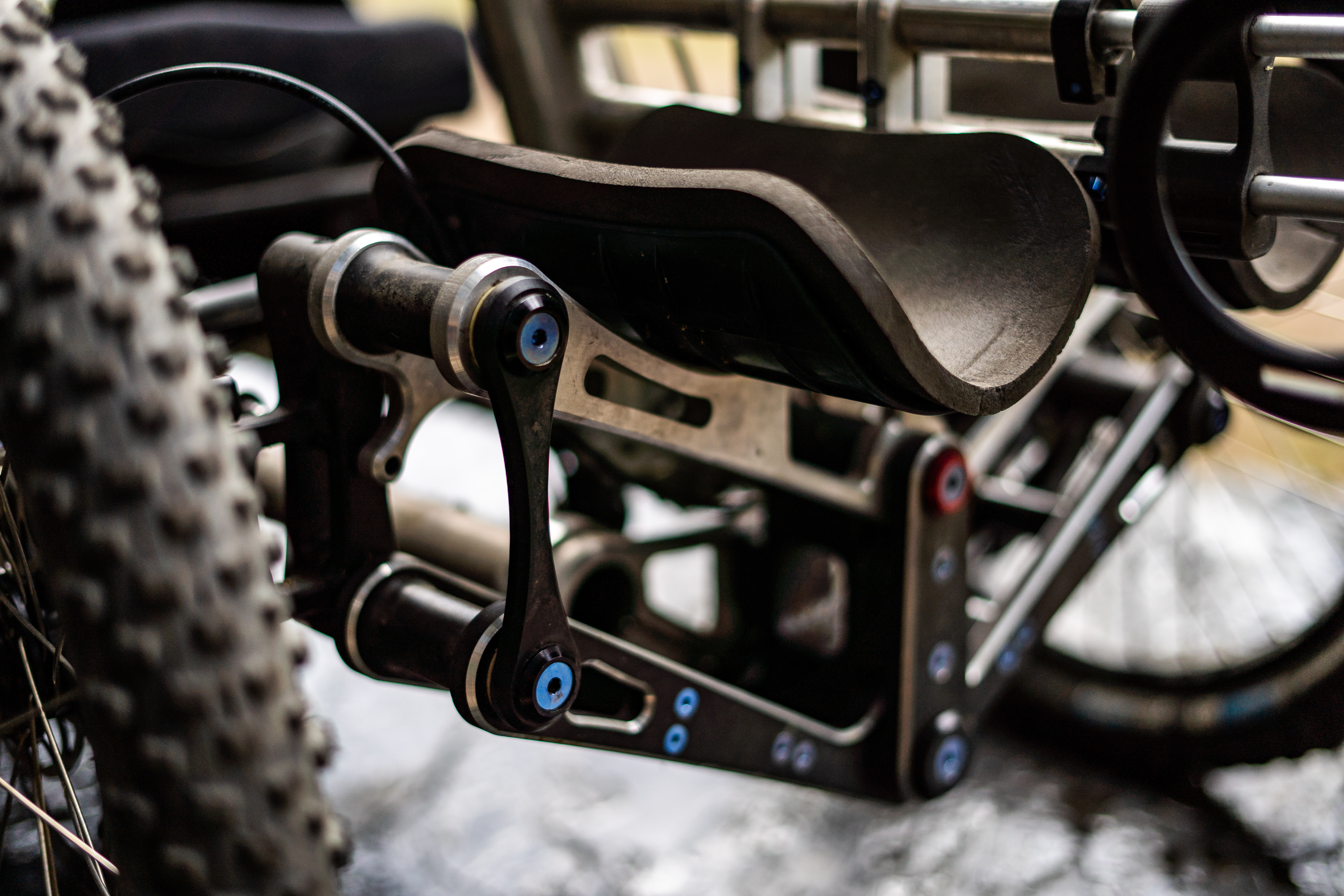 The bike we’ve got today has the tried and tested unique articulating design that allows the bike to traverse cambered terrain. But it also has the benefit of components such as the Bosch Motor providing pedal assistance, opening up so many more doors for adventure. The wireless shifting of SRAM AXS along with all the other amazing componentry that are available today. So much technology came together at the perfect time to build the Perfect Handcycle Mountain Bike.