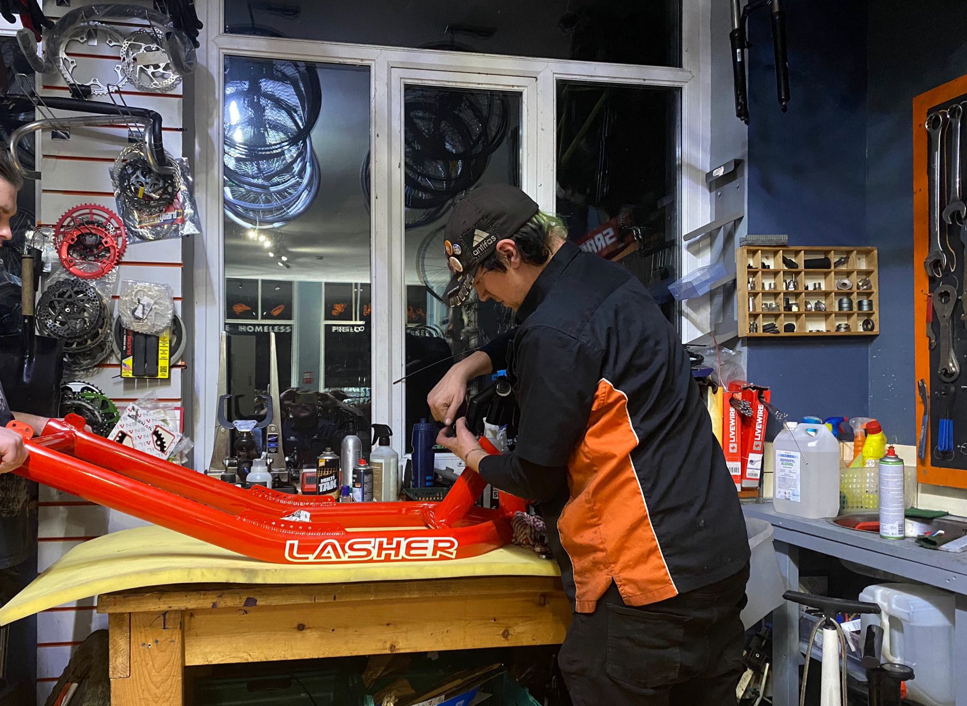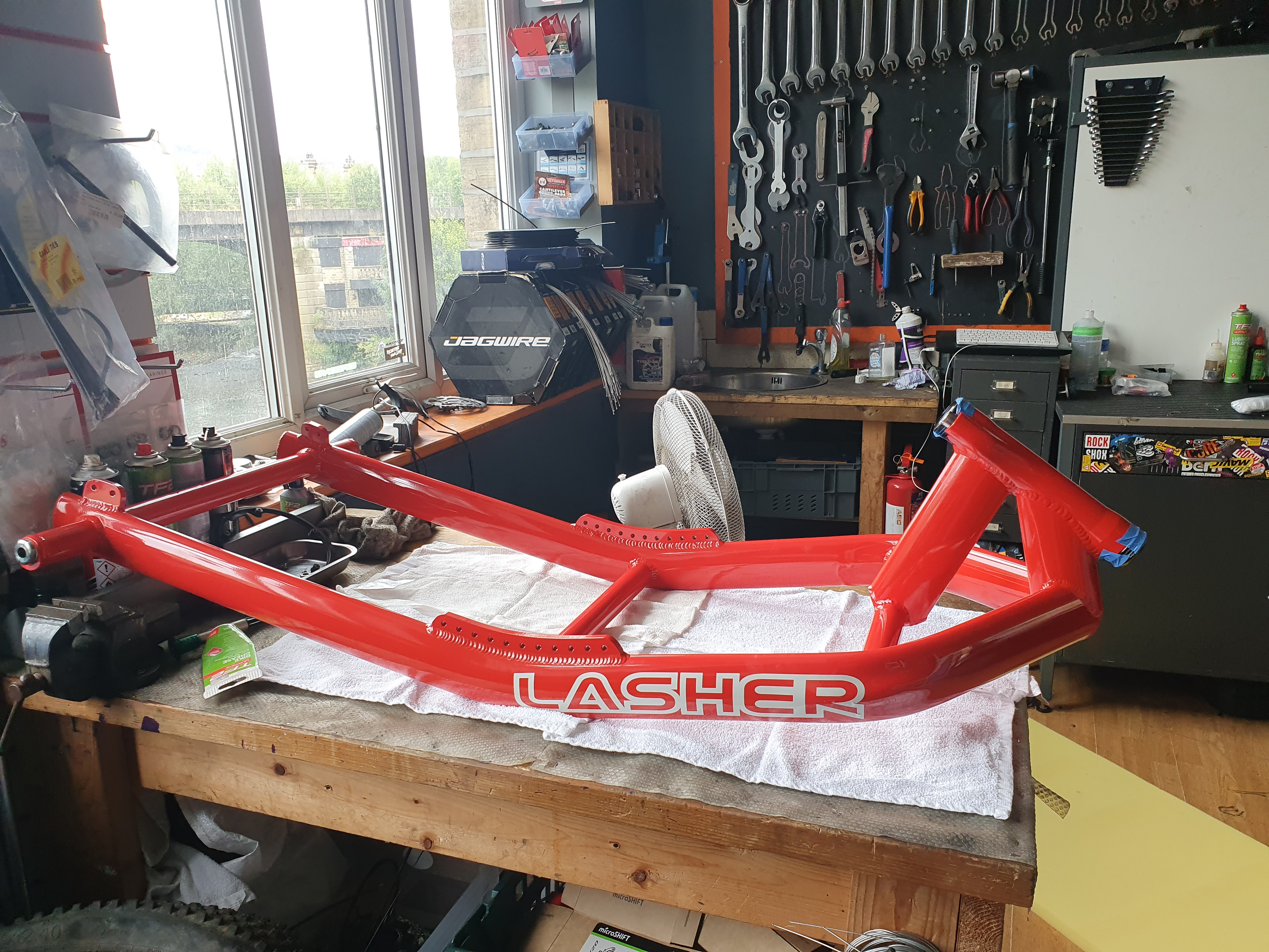 Fast forward a week or so and I heard through the bike shop grapevine that Neil was getting a replacement frame for his old handcycle. I wanted to be the one to build it! I sent him a message asking if he had anyone to build it for him and offering my services and he quickly replied saying that he’d be happy for me to do it and that in the past he’d even struggled to find people who wanted to work on it. I was pumped and couldn’t wait to get started. The frame took longer than expected, getting caught up in customs – despite Lasher, the manufacturer, sending it within a week or so of Neil’s first frame breaking, which is pretty amazing service for a custom built, custom coloured frame. When it eventually arrived we were finally able to get stuck in to it.
