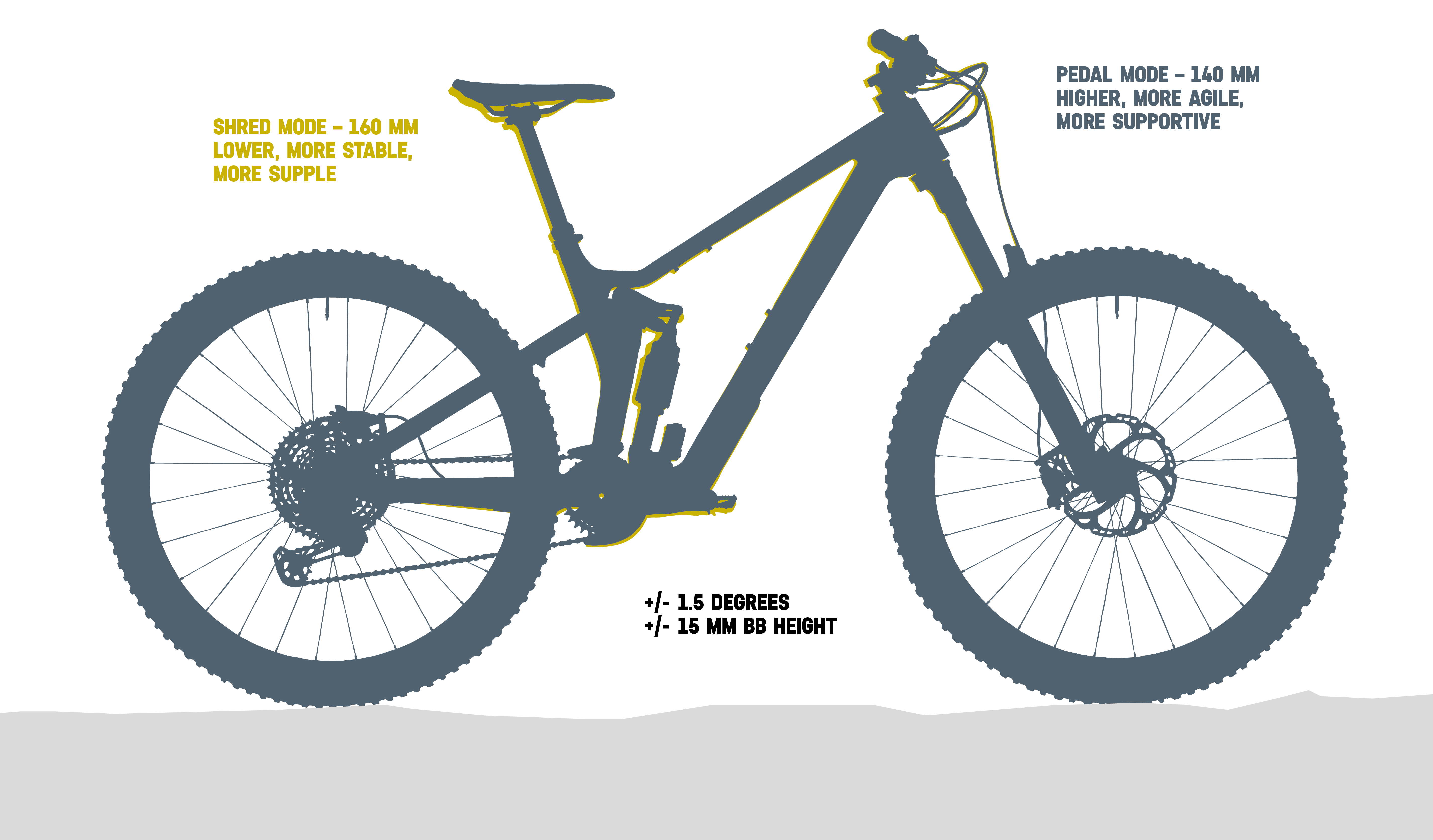 - 160mm travel frame (or 140mm in ShapeShifter Pedal mode)