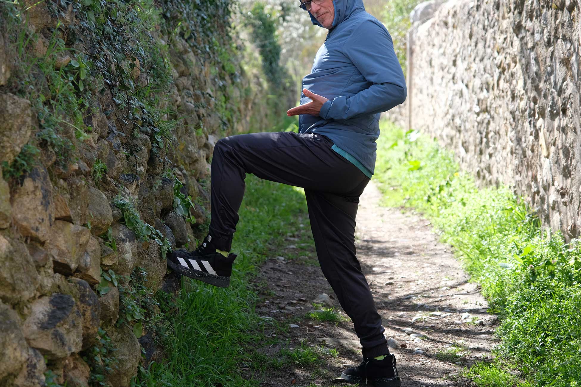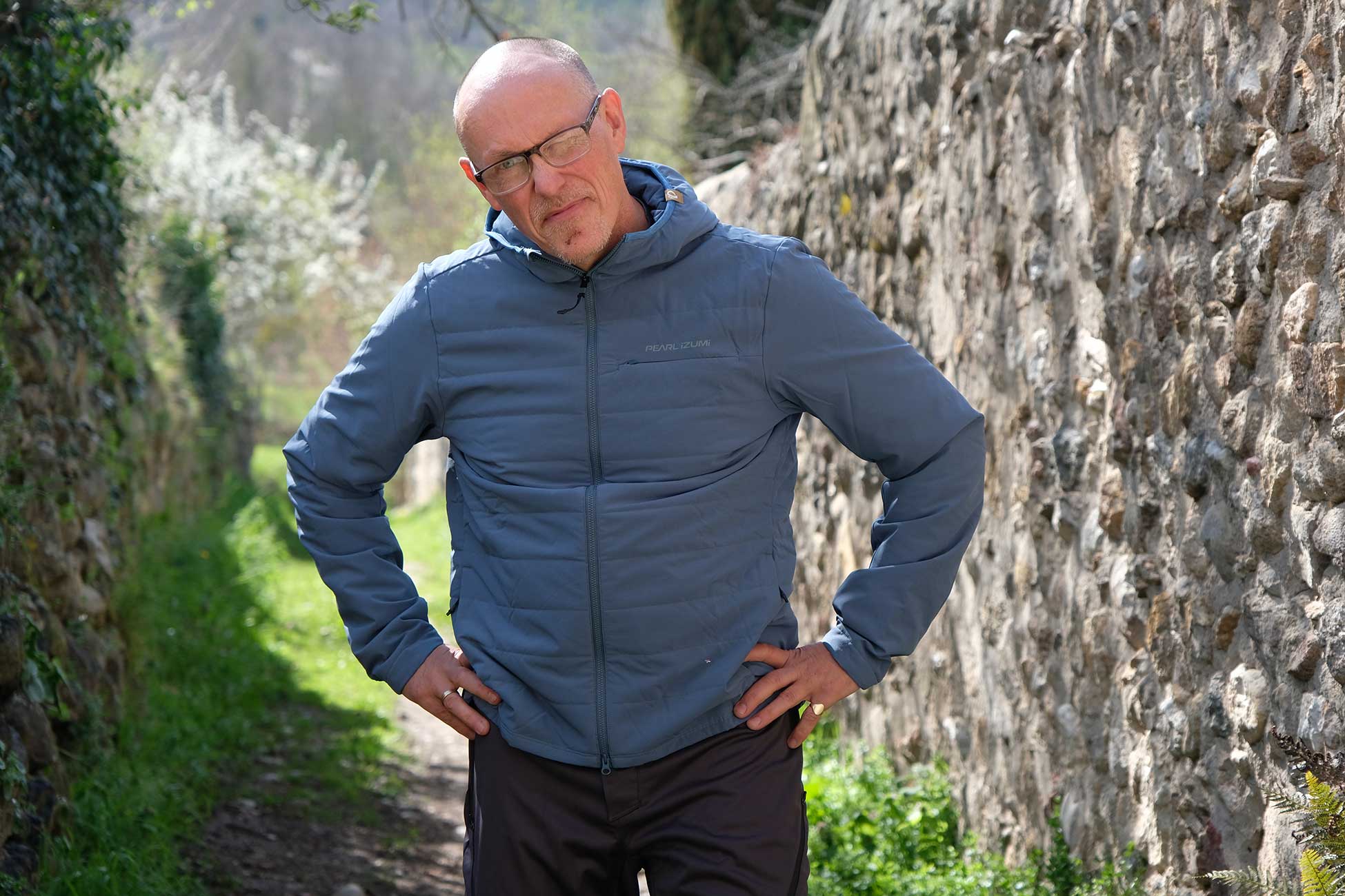 Chipps has been down the alley again, this time to model Pearl Izumi’s latest cycling garb for those optimistic springtime days ahead (as well as some thermal gear for when all hope is dashed (again)). There are a number of long sleeve jerseys, a hooded windshell (in Persimmon, now there’s a colour) as well as a natty hooded thermal jacket and a frankly disturbing pair of semi, but not quite, fitted thermal leisurewear trousers – presumably for riding your bike in…