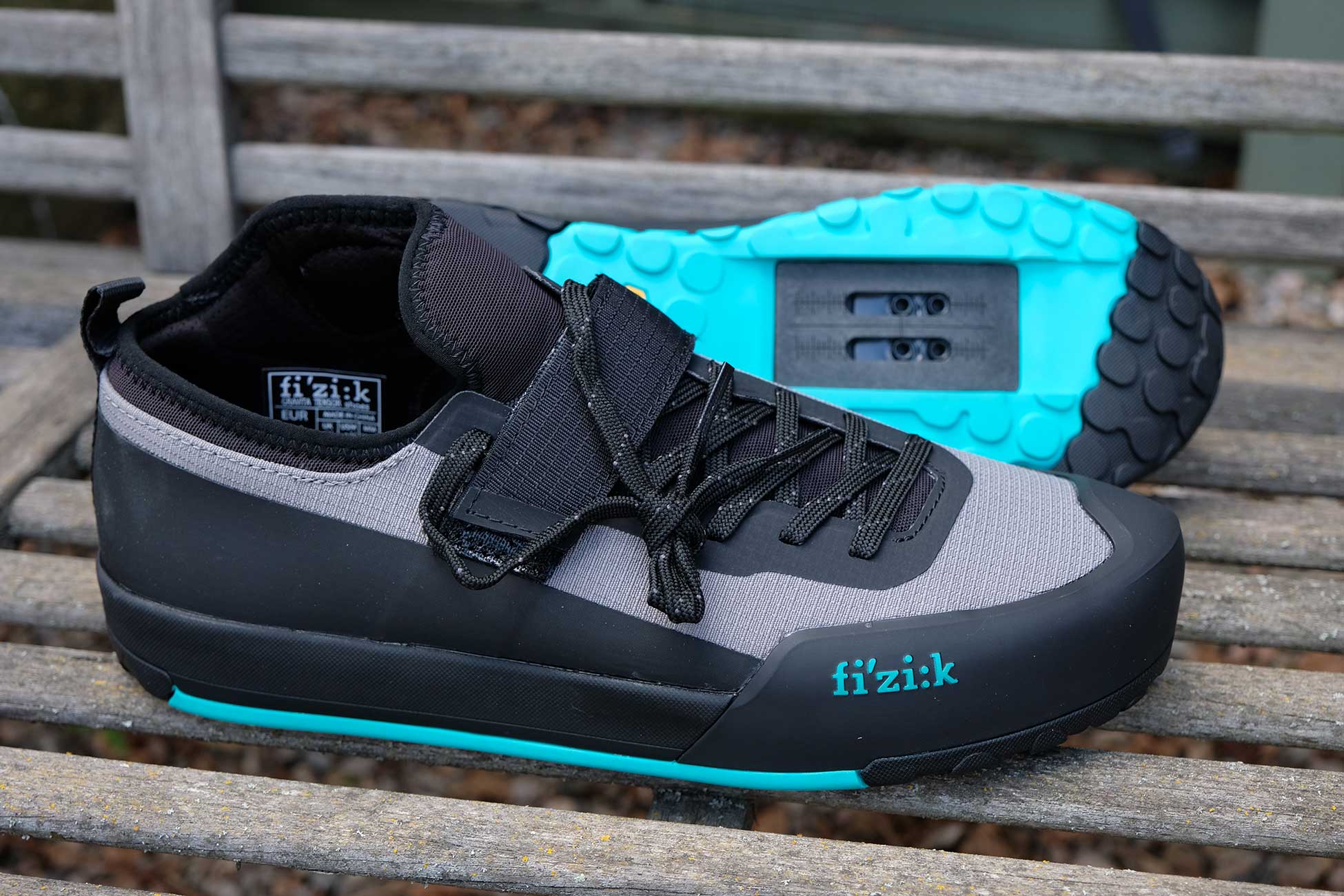 The Fizik Gravita Tensor is the brand’s ‘race-ready gravity shoe’ that is designed to be everything that downhillers demand, along with the light weight needed for riders who also need to get back up the hill under their own steam. There’s a big, wraparound tongue/ankle protector, an extended cleat slot and some grippy Vibram rubber on the sole. And of course, laces – the original infinite closure system. These, and more, are being tested in the woods for a clip-in shoe test later in the year. Stay tuned.