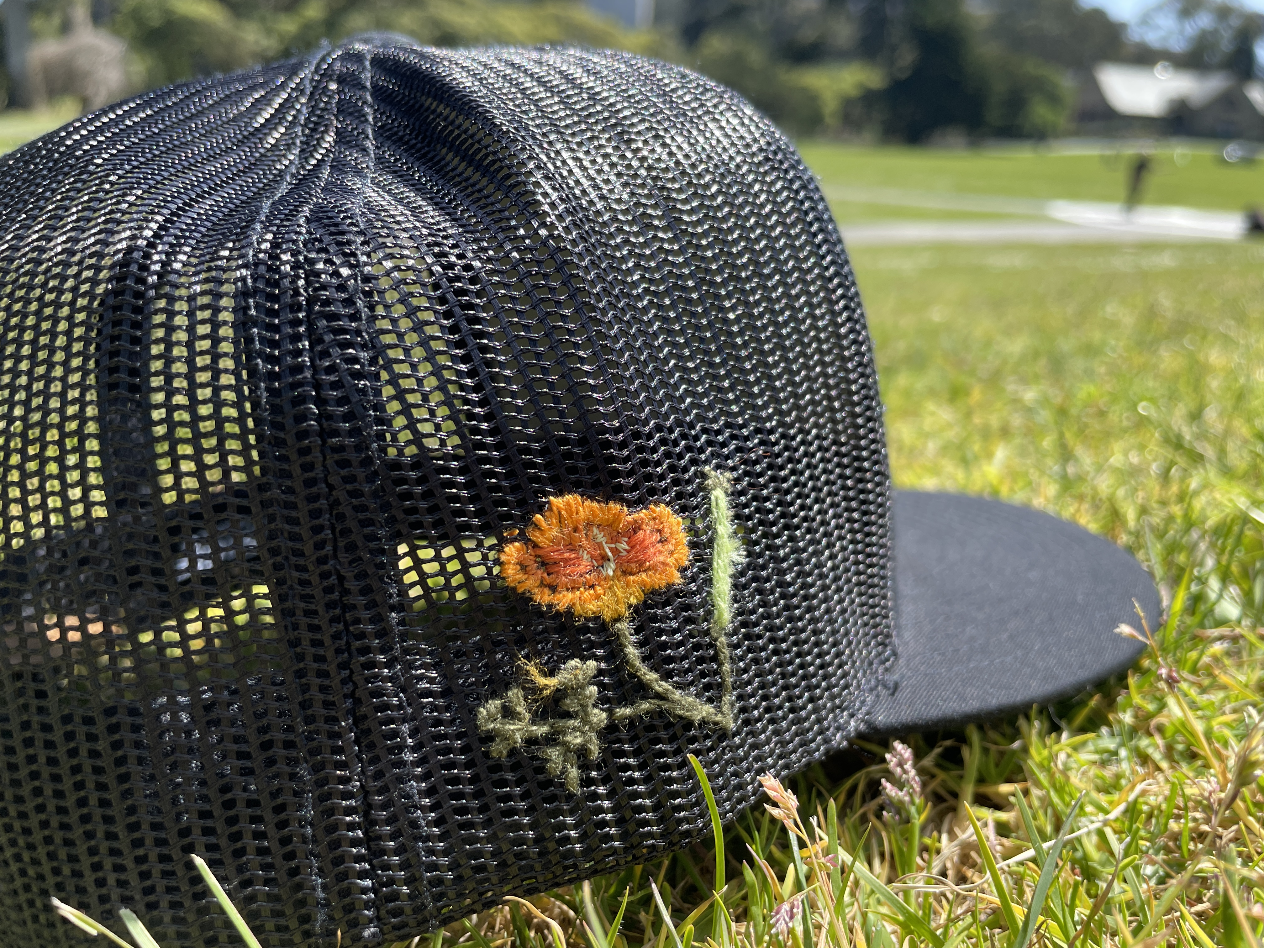 This is the flat brim trucker California poppy special edition of this hat, which means it has some extra hand sewn embroidery on it by Kelsey Ruggaard. The company – and the design on the front – is by very nice guy indeed Tommy Breeze, son of MTB legend Joe Breeze. You can choose from a vast array of his designs on an even more vast array of cap styles, or just have one of his patches to put on something you already own. Hannah dropped in on Tommy’s workshop while she was in California, and wore this hat pretty much every day afterwards. And now she’s back in the UK she’s a little scared her kids will laugh at her.