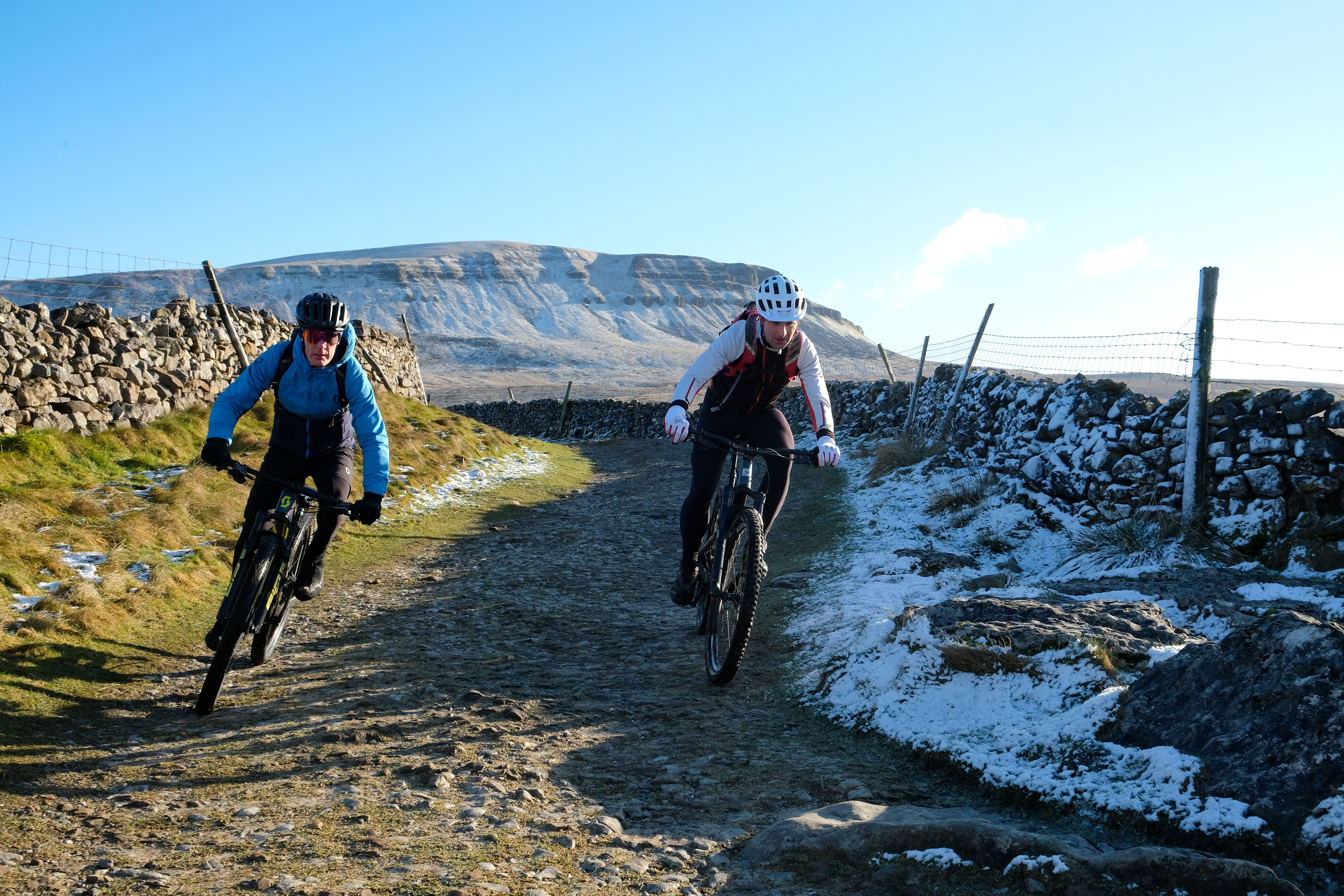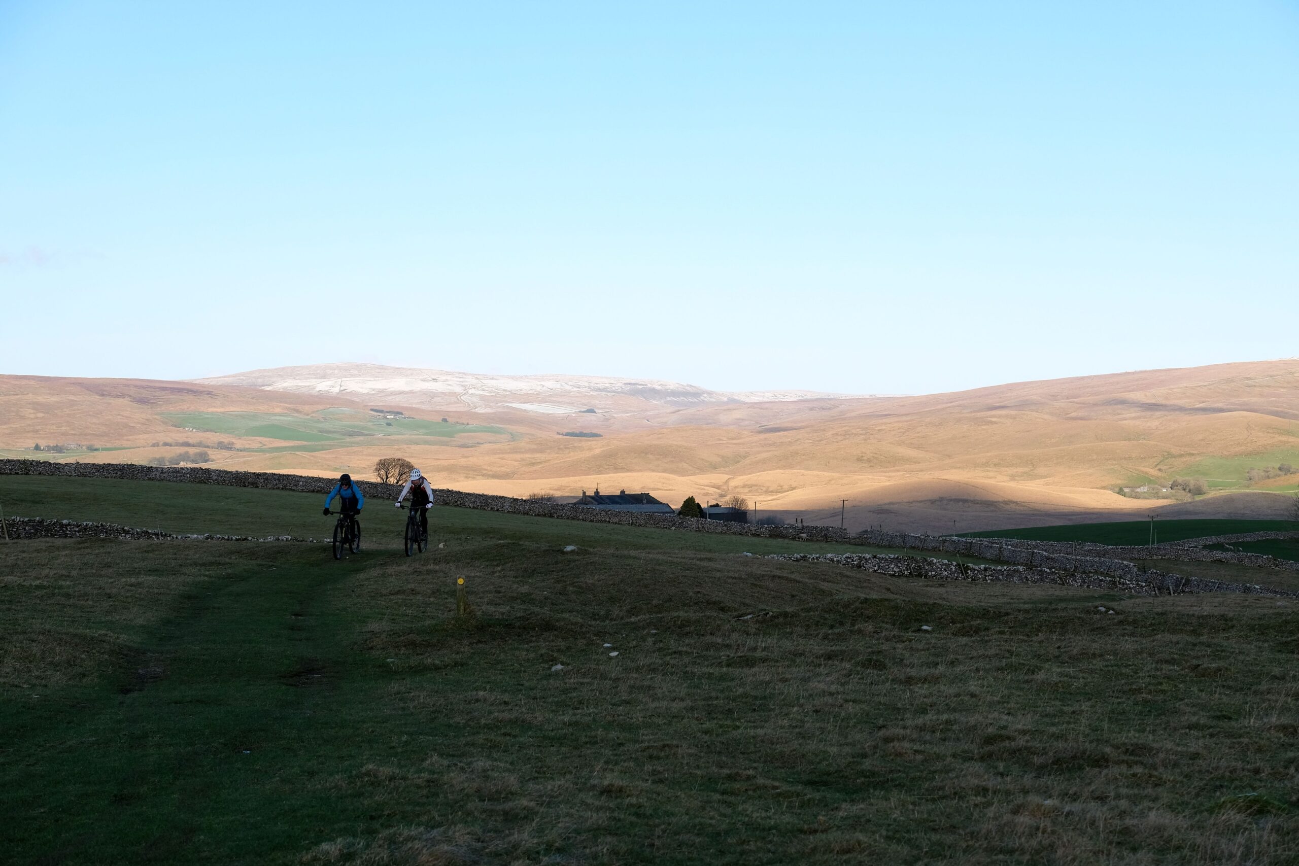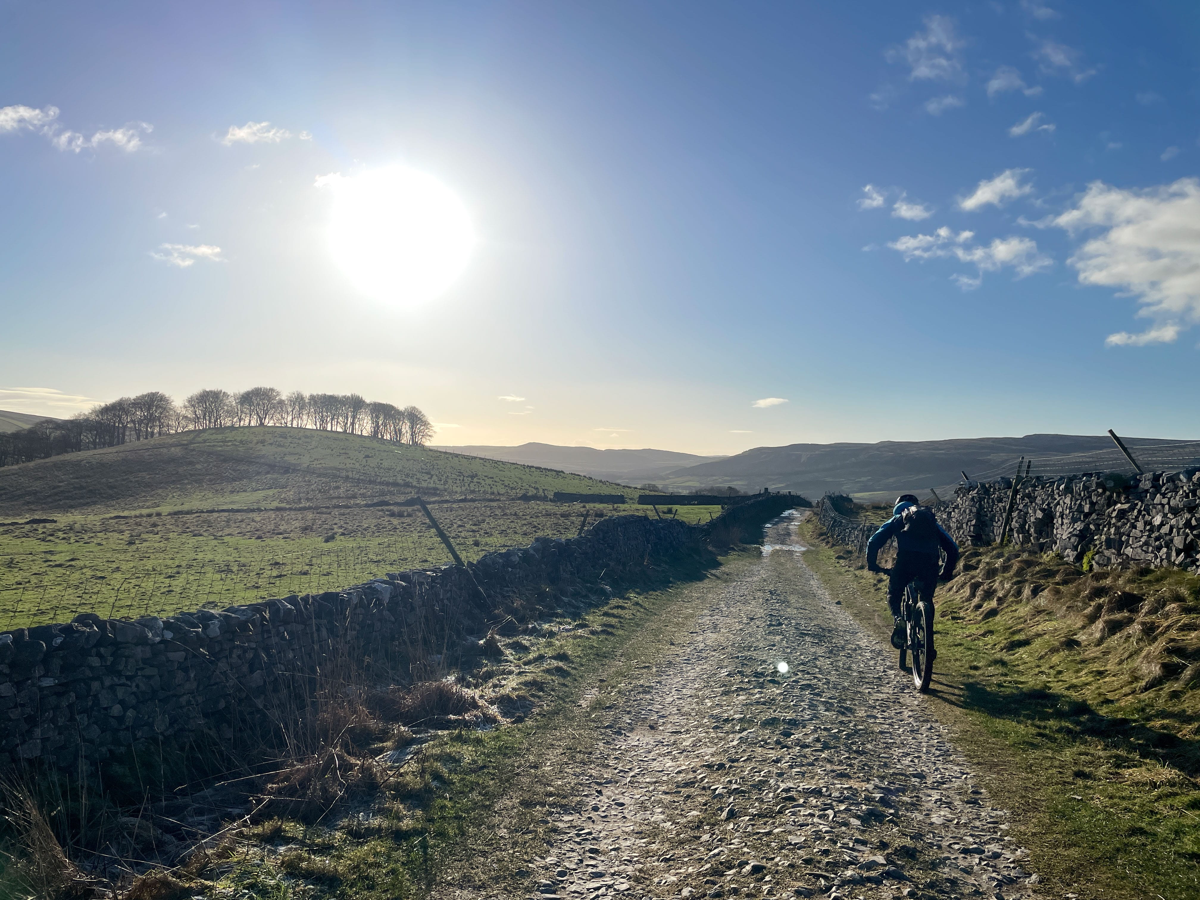Luckily for us, we weren’t going that way, and our trail started to ease ever downwards as we headed into the sun and towards the village of Horton in Ribblesdale. While punctuated by a few streams and boggy passages (mostly frozen for us today) this is a fun and fast track to ride.