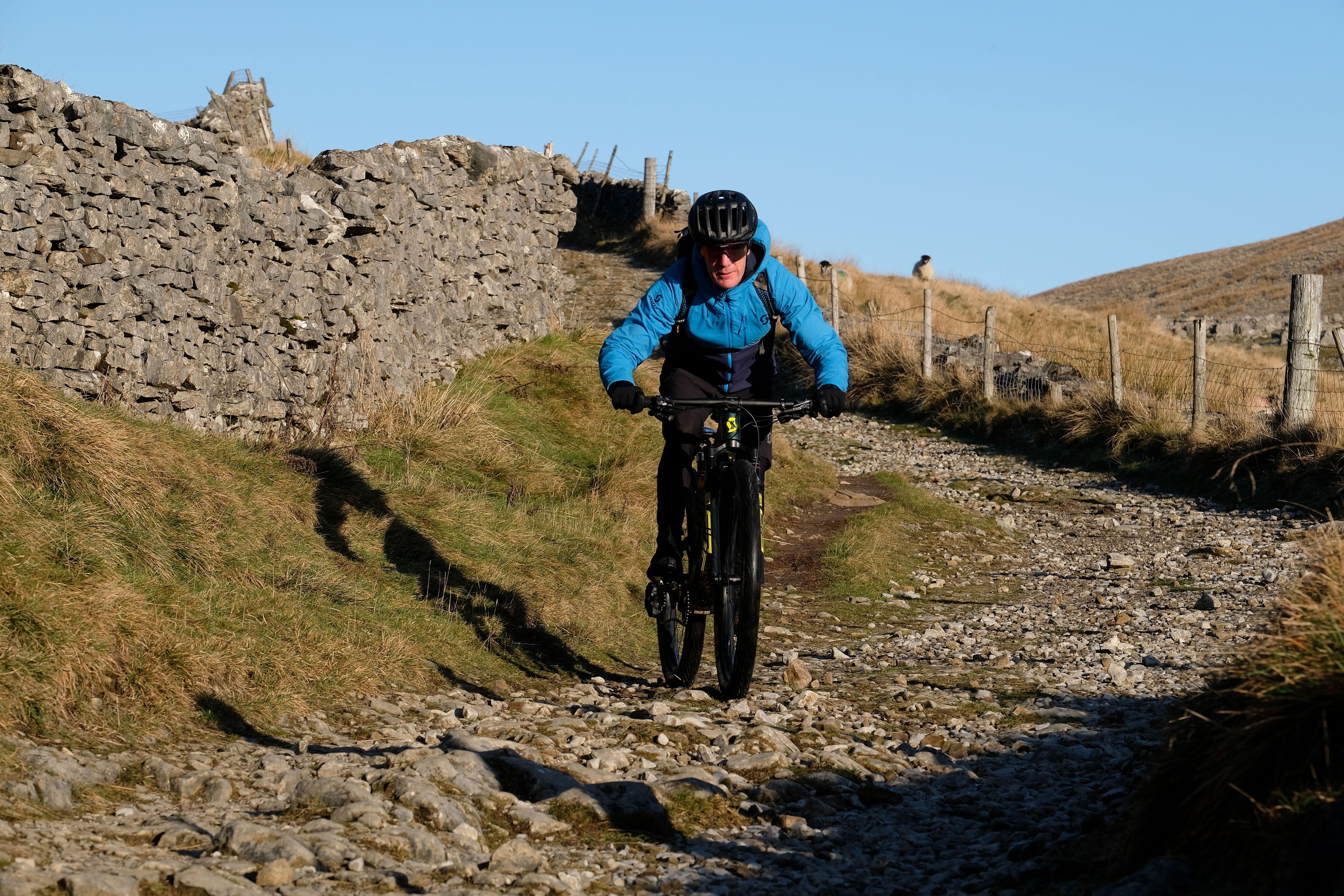 The whole area is set up for tourists, with plenty of catered and self-catering accommodation, pubs that do great food, and tea shops that welcome muddy boots. Although the hills are big and dramatic, the riding in general is suitable for all bikes, so it’s a great place to visit if you have less experienced riders, or if you’re on a mix of hardtails, full sussers, e-bikes and gravel machines. All will be able to make it up and down the trails without too much difficulty. Rolling over the short grass under the scudding clouds of a summers’ day is a real Mint Sauce-like experience of greens and greys and blue. On a wet day in November, it’s a little less inspiring.