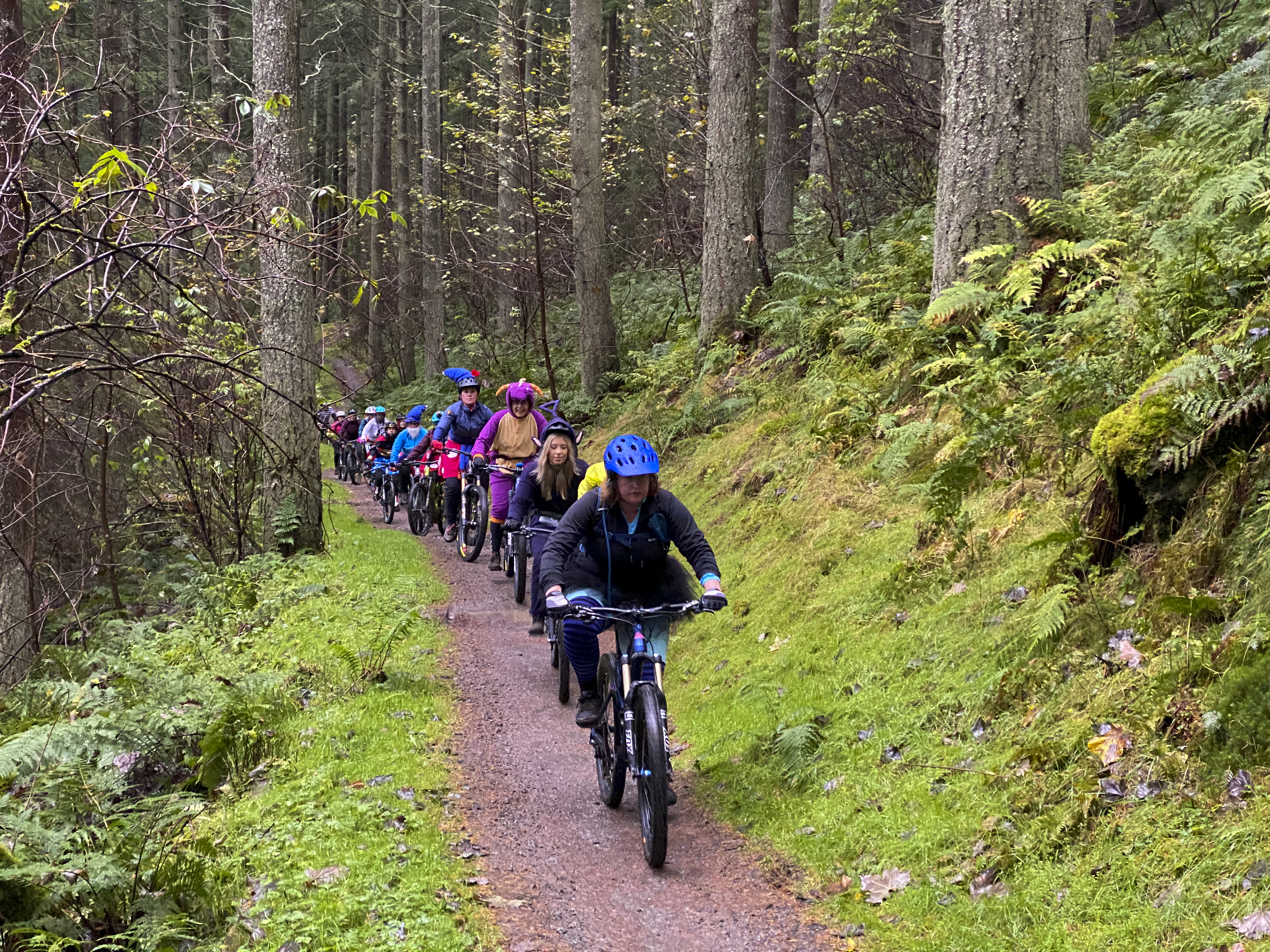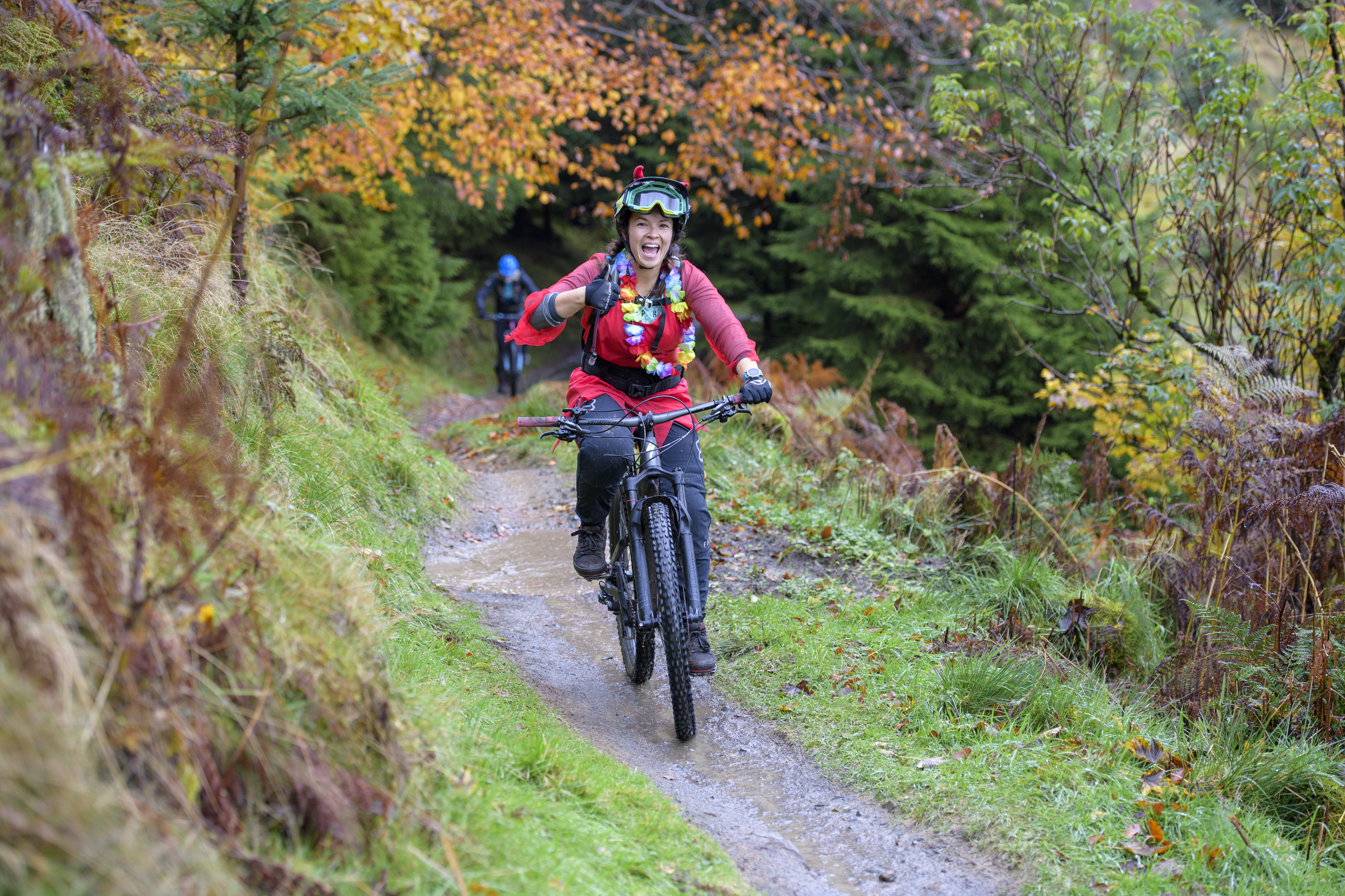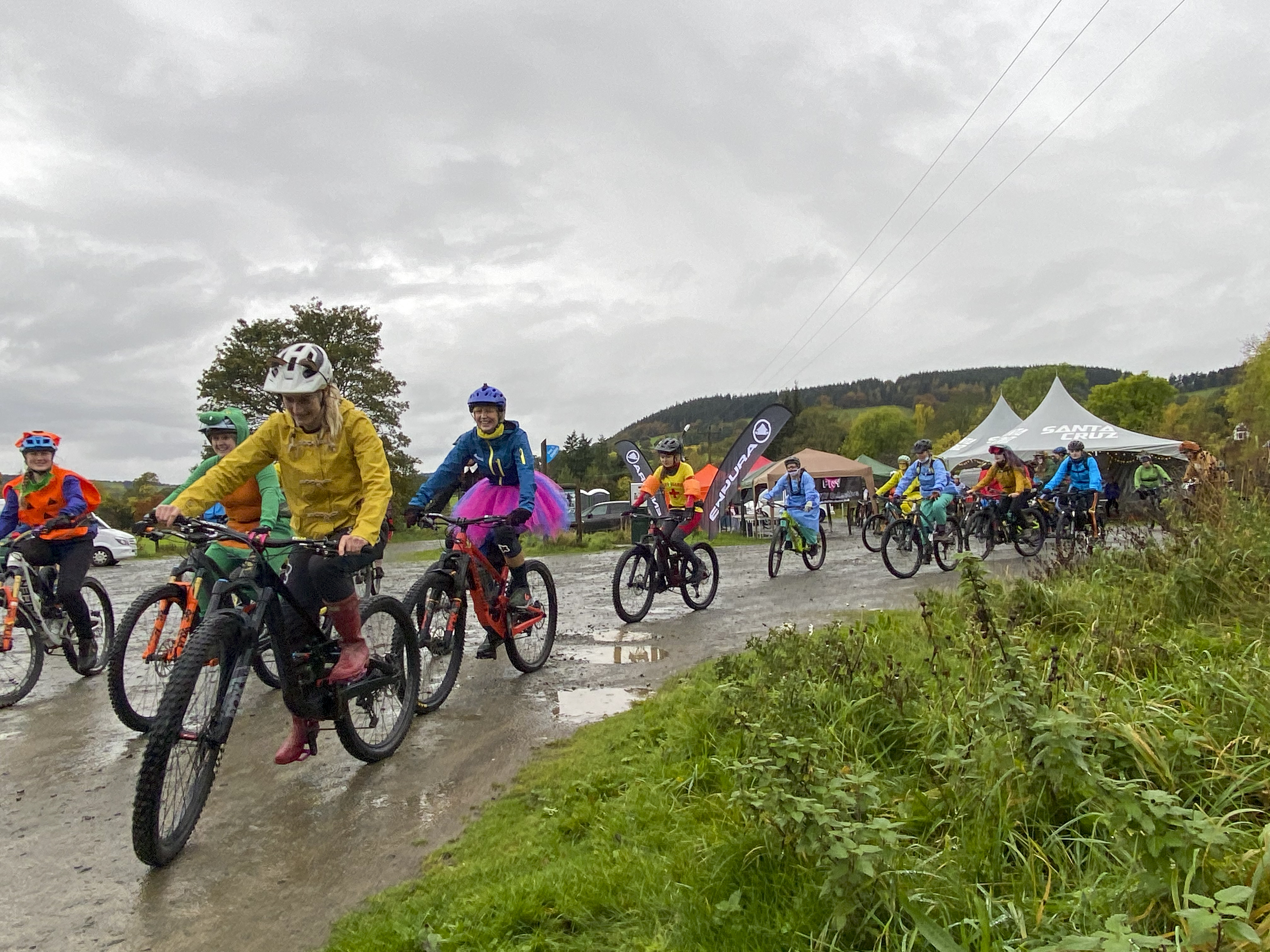Out on the trails I spend some time talking to other riders, mostly blokes, who had wondered why there were so many women all over the forest. All those I spoke to genuinely thought it was a great idea, both in terms of getting so many women riding and having an event that was primarily focused on fun, although they did confess that they would all be lazier about the fancy dress aspect of it. One guy who had been out in Peebles the night before had opened his camping pod curtains to see several goblins. He just presumed he wasn’t yet sober until he realised it wasn’t just goblins he could see. He was quite glad to have an explanation for his early morning visions.