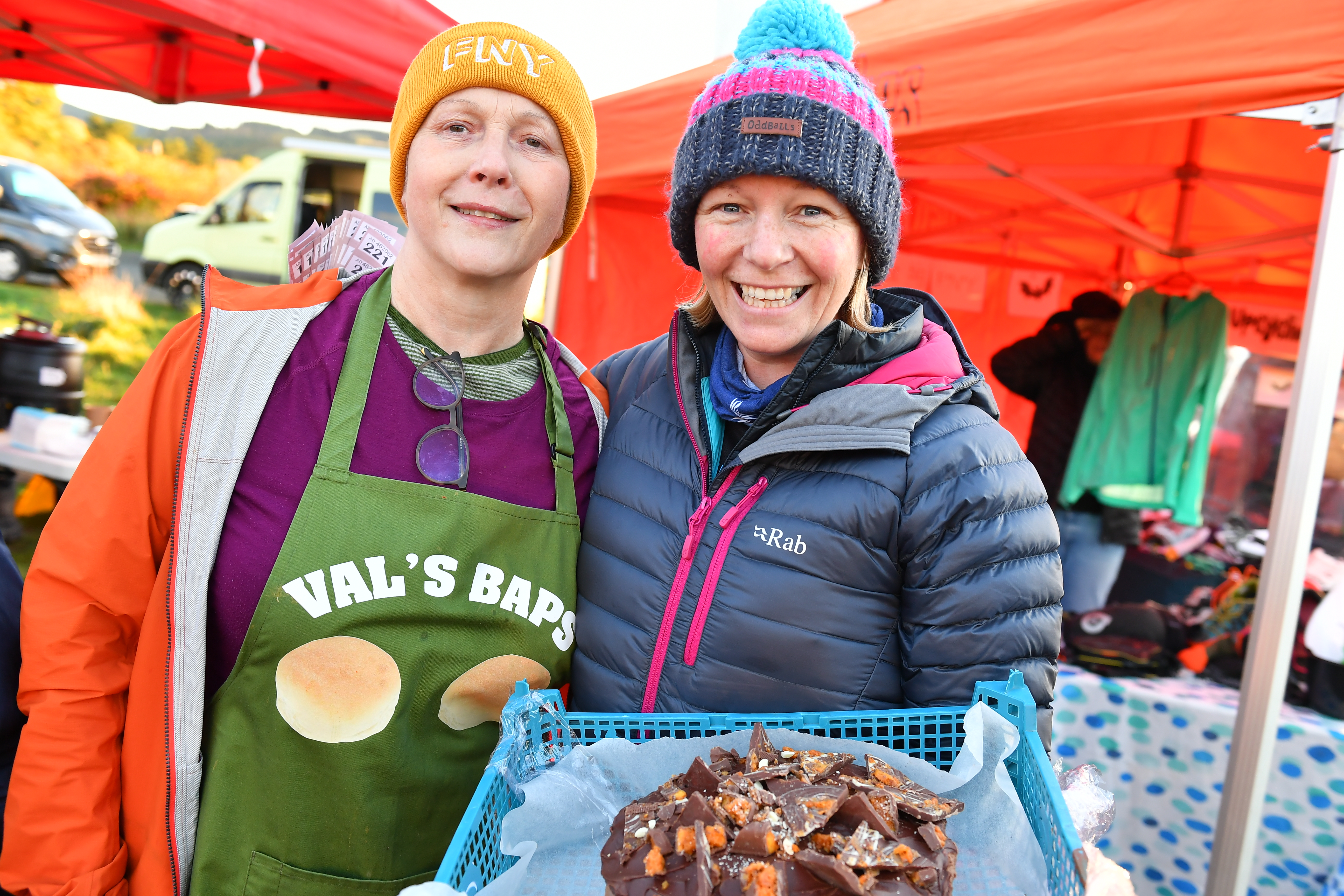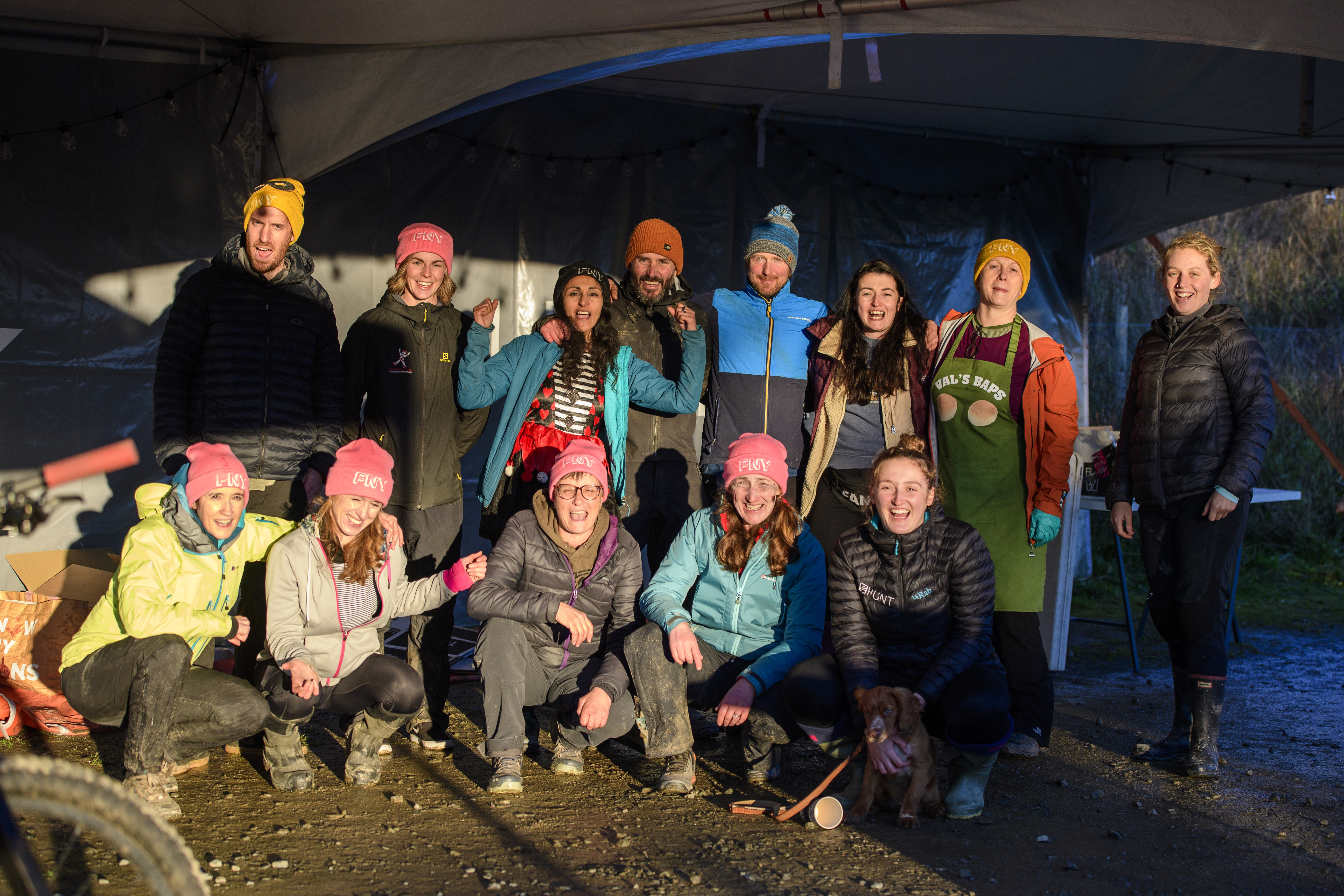 Back down at HQ there is warm food for all served up by Val and team. You have to admire a woman who can rock a pinny with ‘Val’s Baps’ written on it including pictures of baps on her baps. That’s just sheer style with a little cheek, a lot like the event itself. There’s merch for sale, including raffle tickets. Now, this is not just a crappy raffle with some bits and pieces scraped together from someone’s unwanted pile… this is glorious. There are prizes from local shops in the Tweed Valley, there are cakes, there’s clothing from Endura, and there is a Juliana Maverick frame and shock (most of the shock is on the prize-winner’s face).