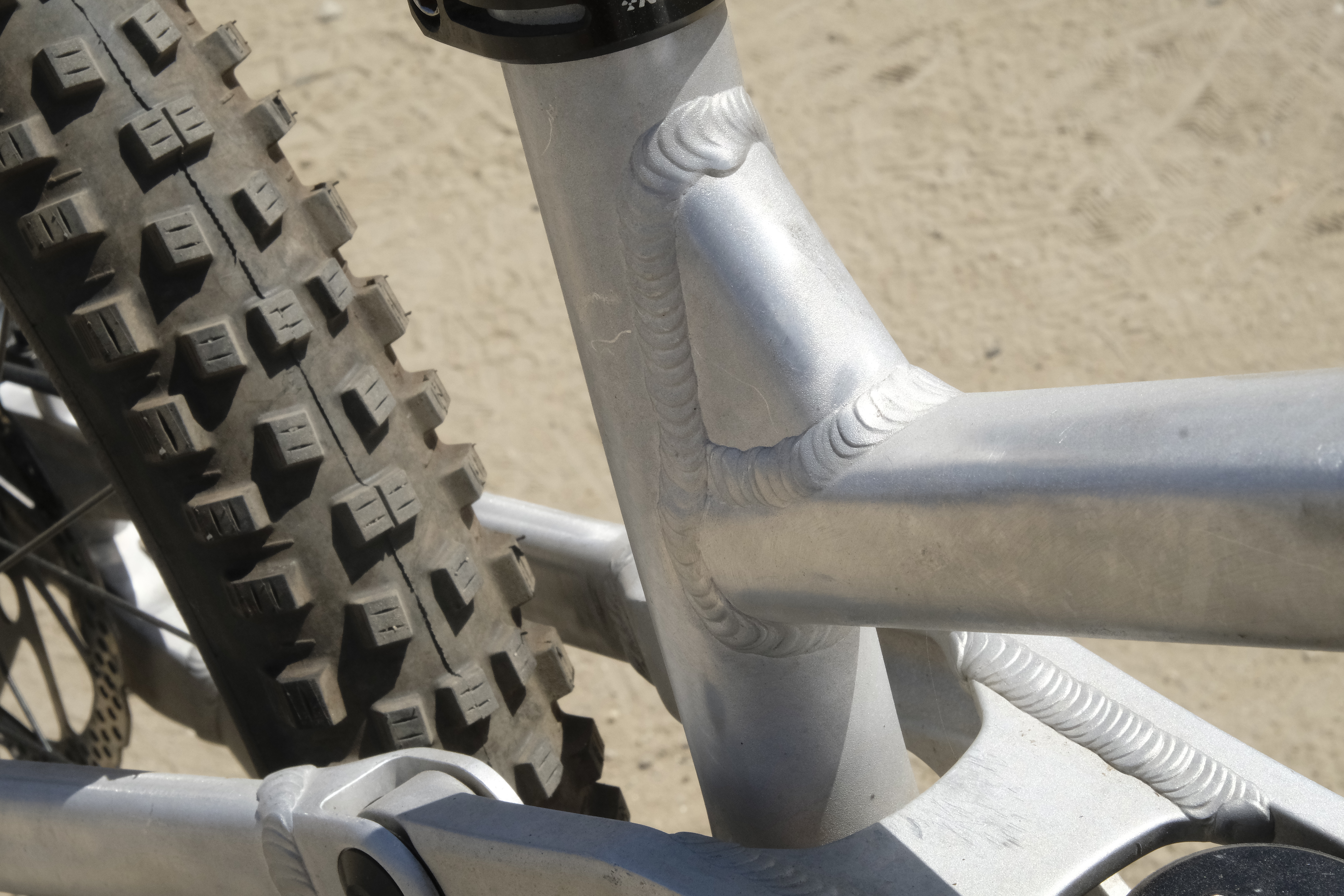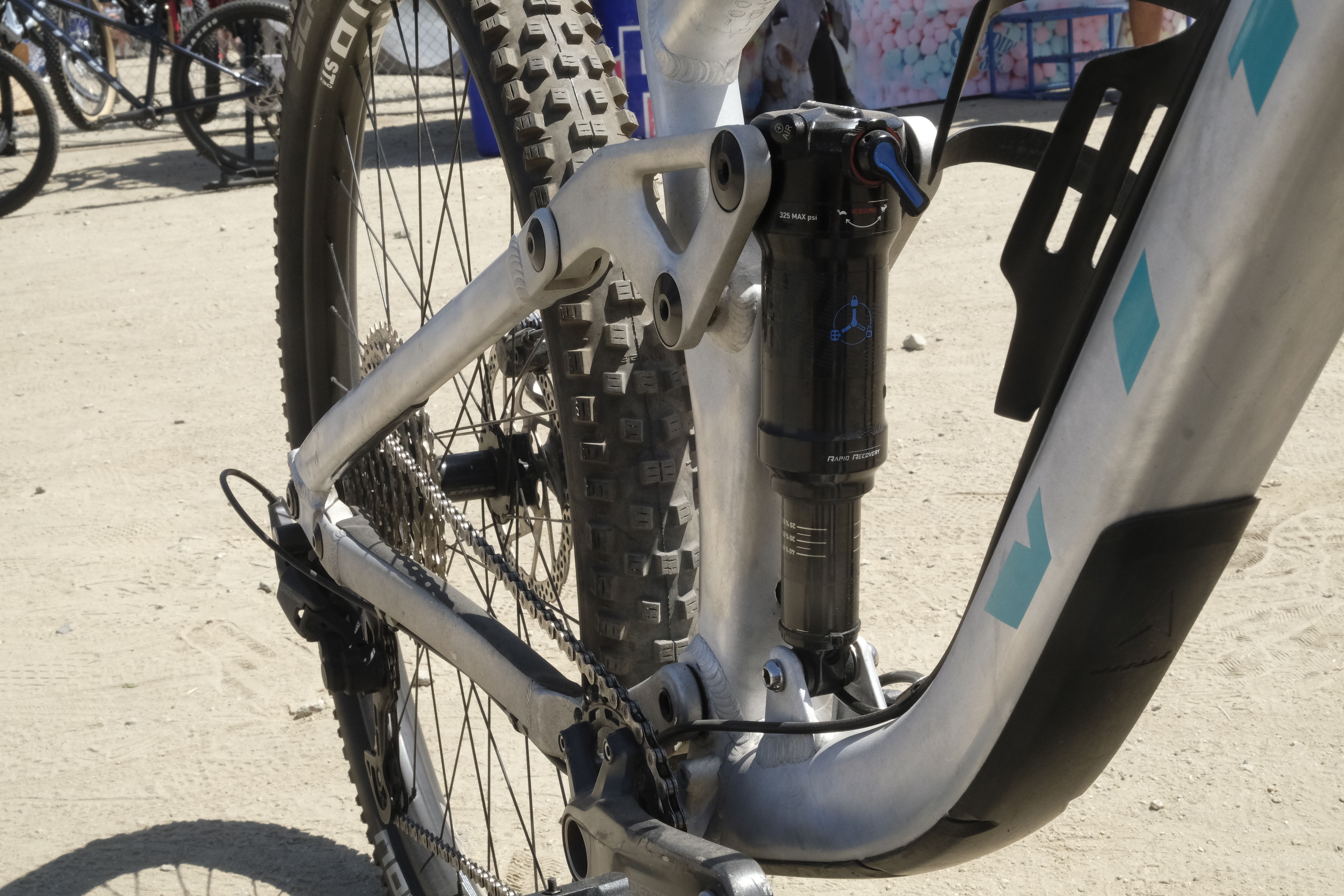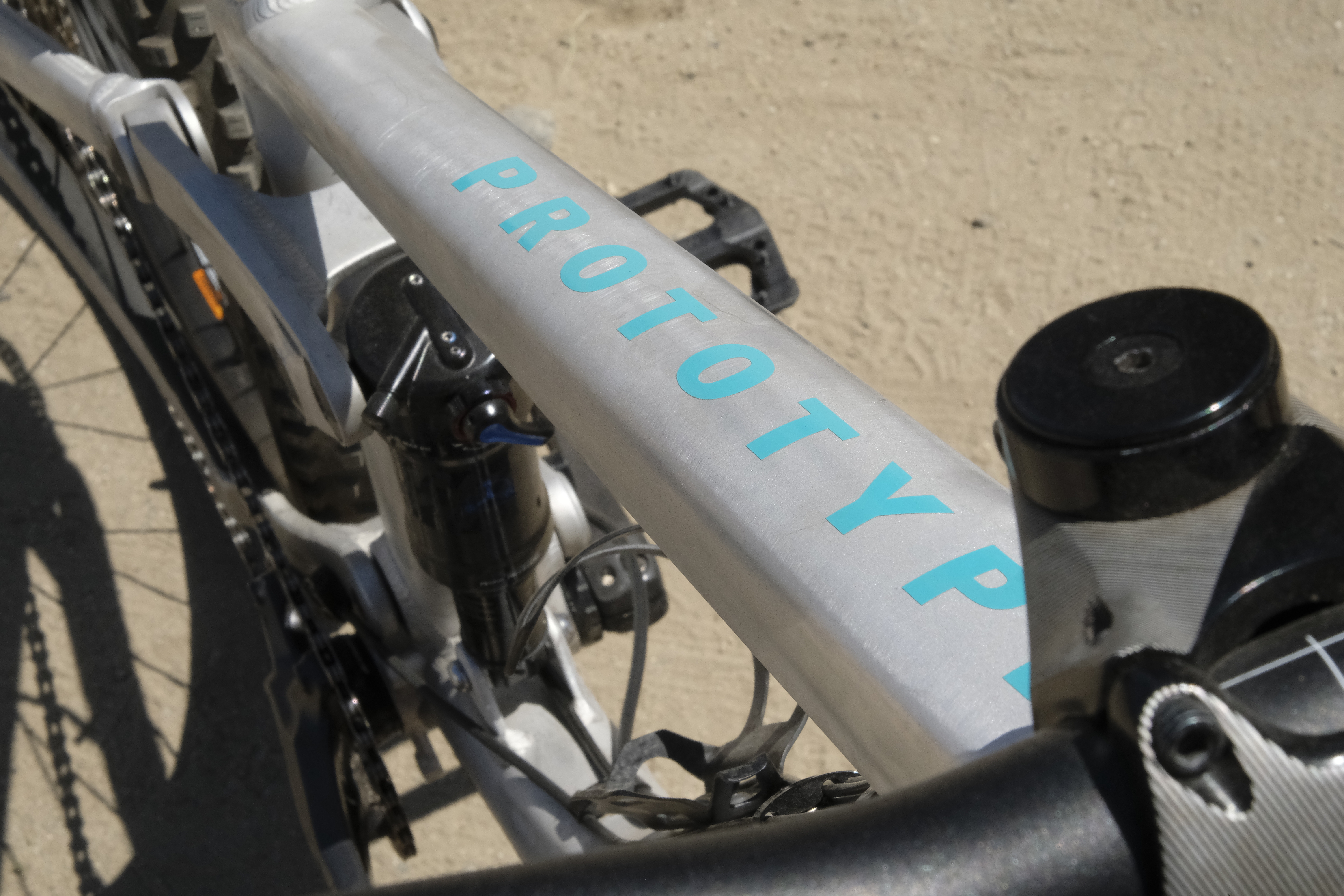 This prototype has a 77° seat tube angle and 65.5° head angle, with 140/140mm travel.