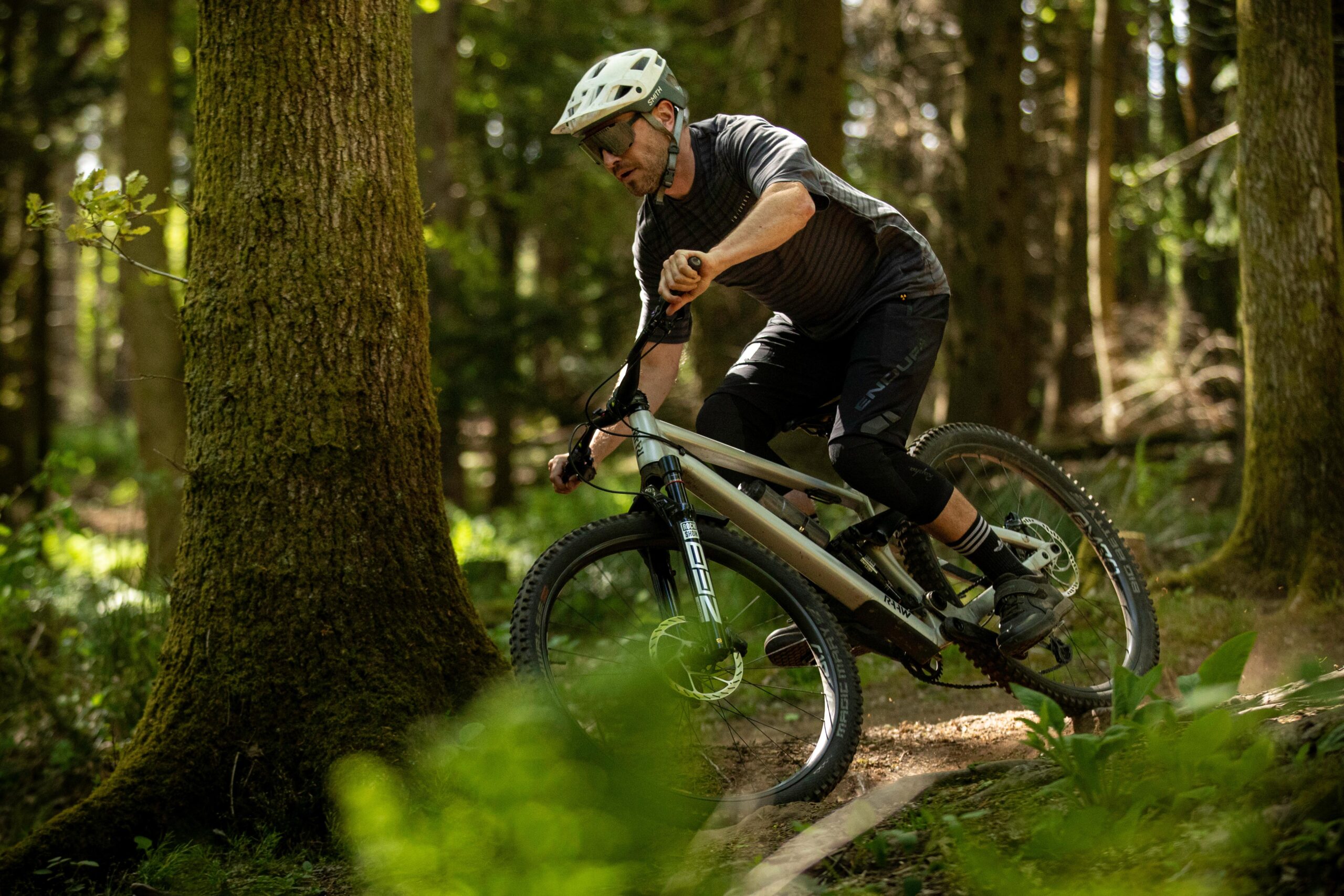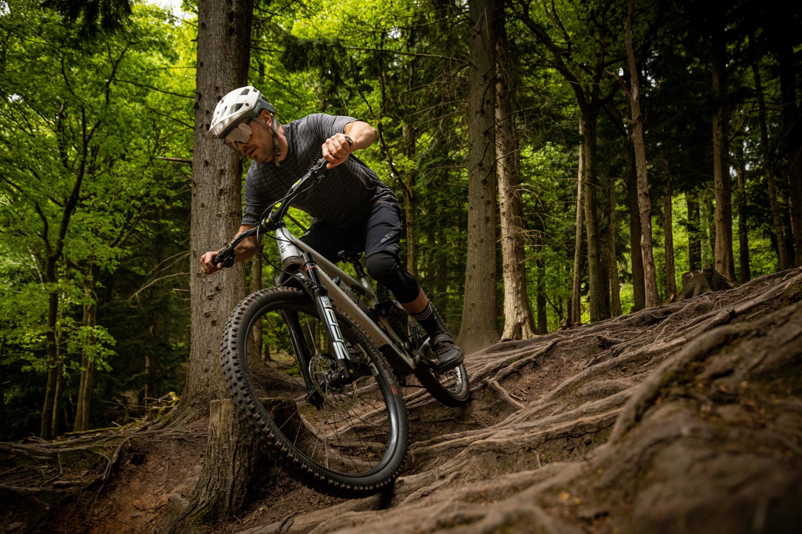 It does a properly good job of ironing out the trail, letting you get off the brakes and ride what’s in front of you. It floats across carpets of roots, soaking them up and smoothing things out impressively, adding grip and letting you look ahead. Small trail chatter disappears under the front wheel, with no undue feedback through the bars, and that suppleness adds grip across cambers and roots. The new damper and Buttercups certainly seem to what they claim, removing high frequency trail chatter and vibration.