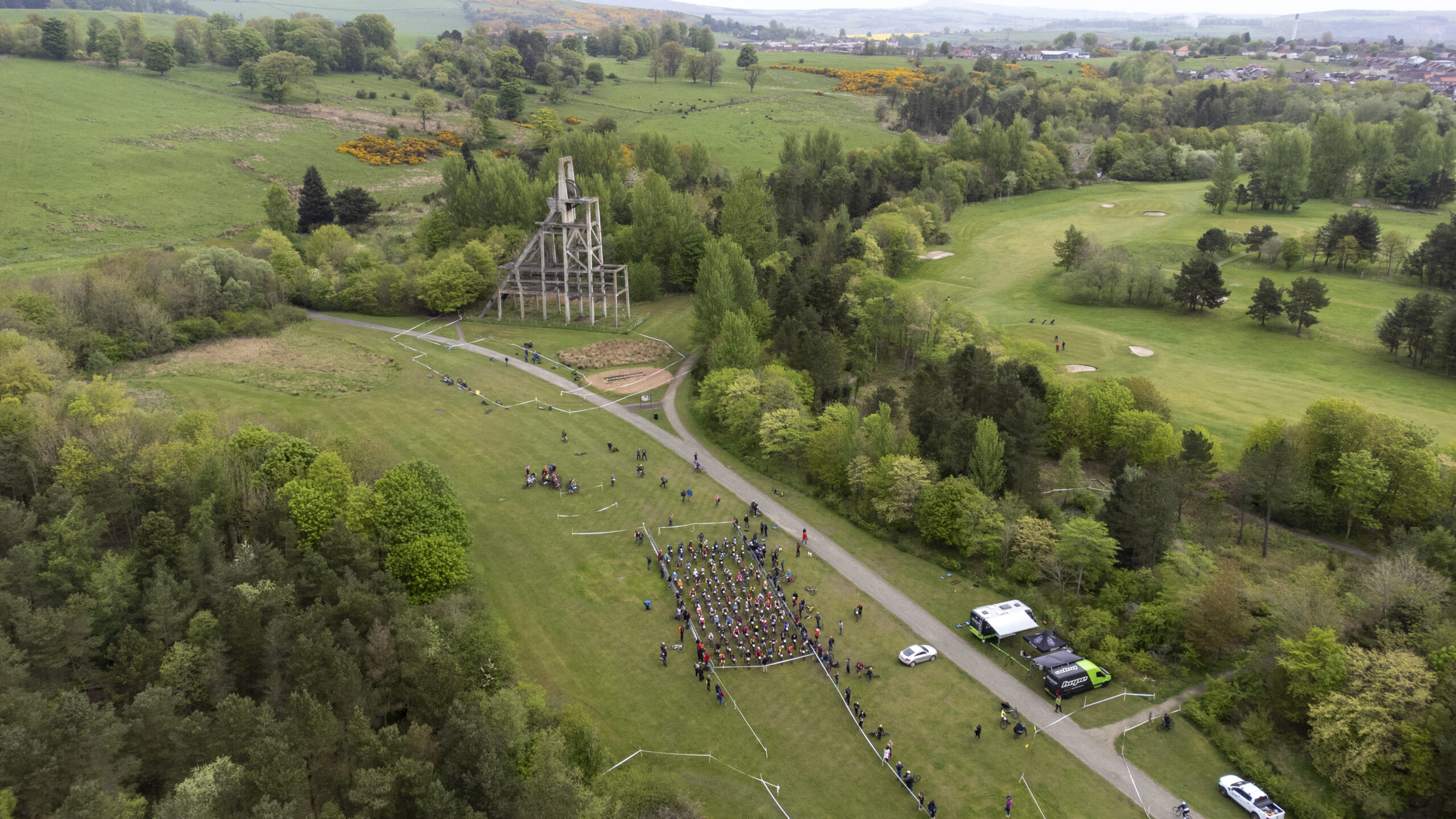 We headed further into Scotland for round three of the national XC series, up to Lochore Meadows in the Kingdom of Fife. It’s a place that’s been inhabited and worked for several thousands of years and visible remains from that include a few chunks of castle and a concrete pit head from more recent mining. The mine shut in the 60s and the area has been regenerated into a well-used park. There are a few bike trails here as well as water sports on the loch, plus it’s the home to Fife’s Outdoor Education Centre who work incredibly hard to bring the joys of doing exciting stuff outside to a whole range of children and families. There’s also a local bike club, Meedies, who not only encourage cycling locally but brought a whole range of home-made cakes to sell at the race. So, big shout out to them and to Andy the Park Ranger for all the help and support they gave to SXC putting on the race.