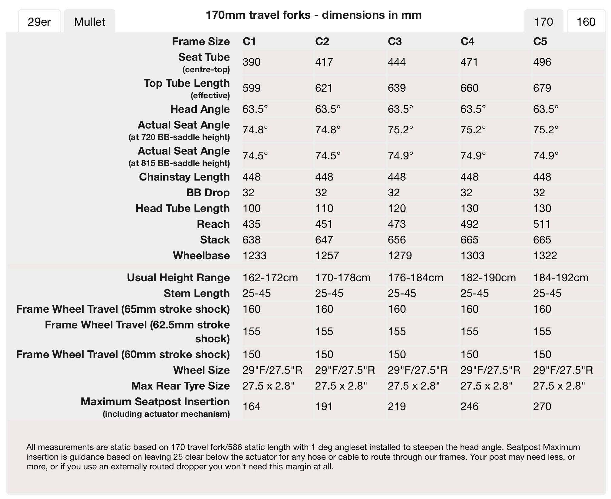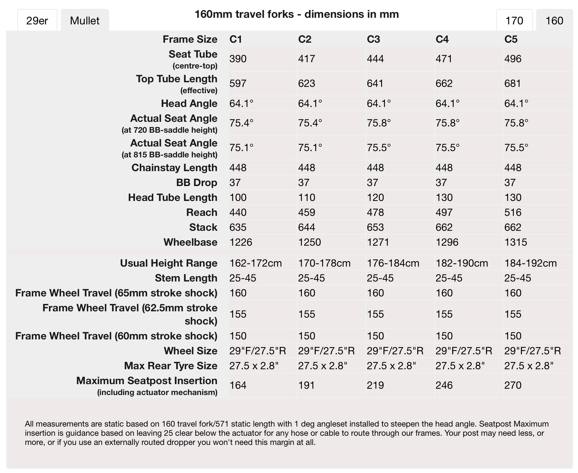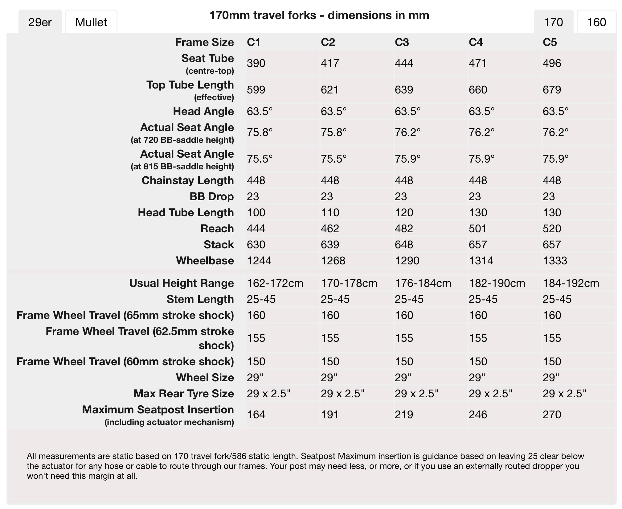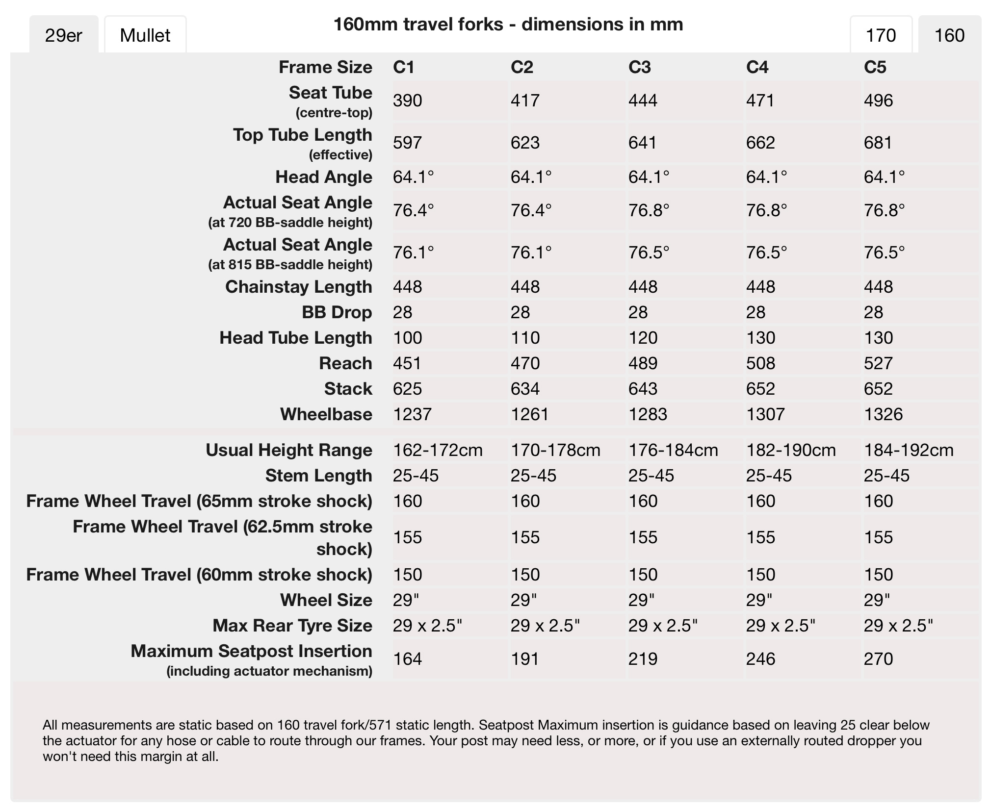 It also helps give choice. Say, if you’re six foot tall. Cotic don’t dictate one frame size. They actually put six footers on three different frame sizes (C3, C4 or C5). Do you want a 482mm, 501mm or 520mm reach? Do you want a 444mm, 471mm or a 496mm seat tube length?