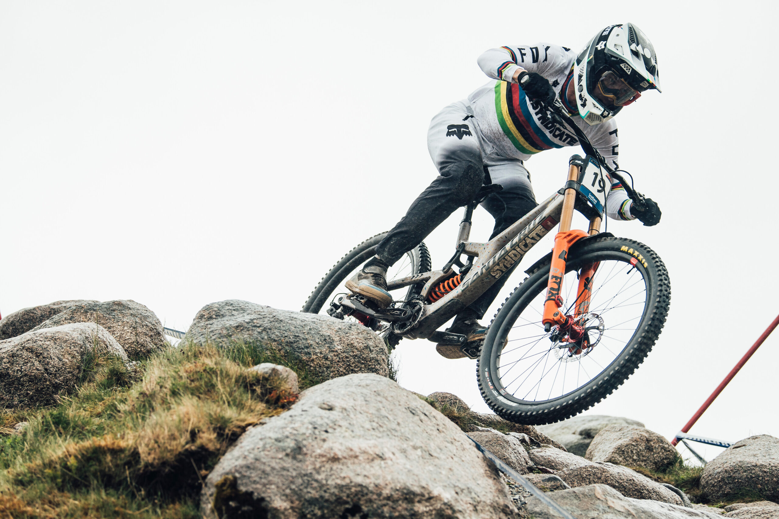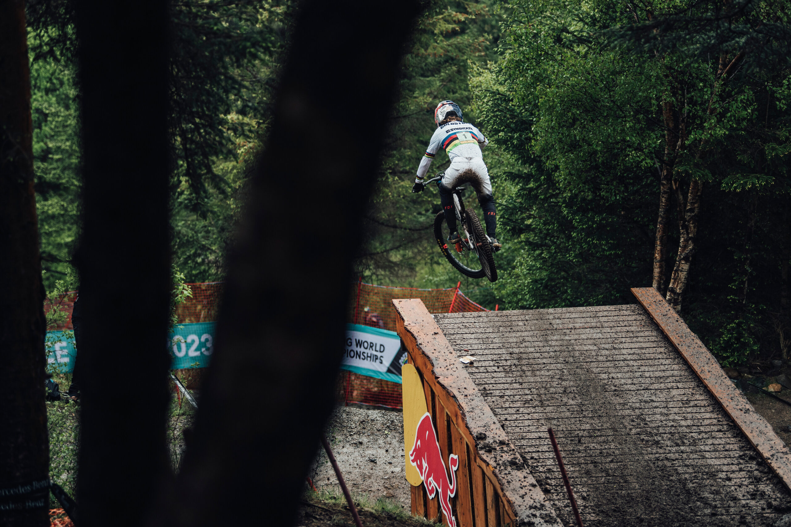 Winner of the last two World Cups in Fort William, Amaury Pierron, had opted for a custom ‘full 29’ Supreme to try and generate more speed on a flatter track. His run was incredible. Despite the poor conditions he was never more than a second back before going green on the motorway and crossing the line half a second ahead of his teammate Daprela. We once again had a French 1,2,3 but with a completely different set of riders.