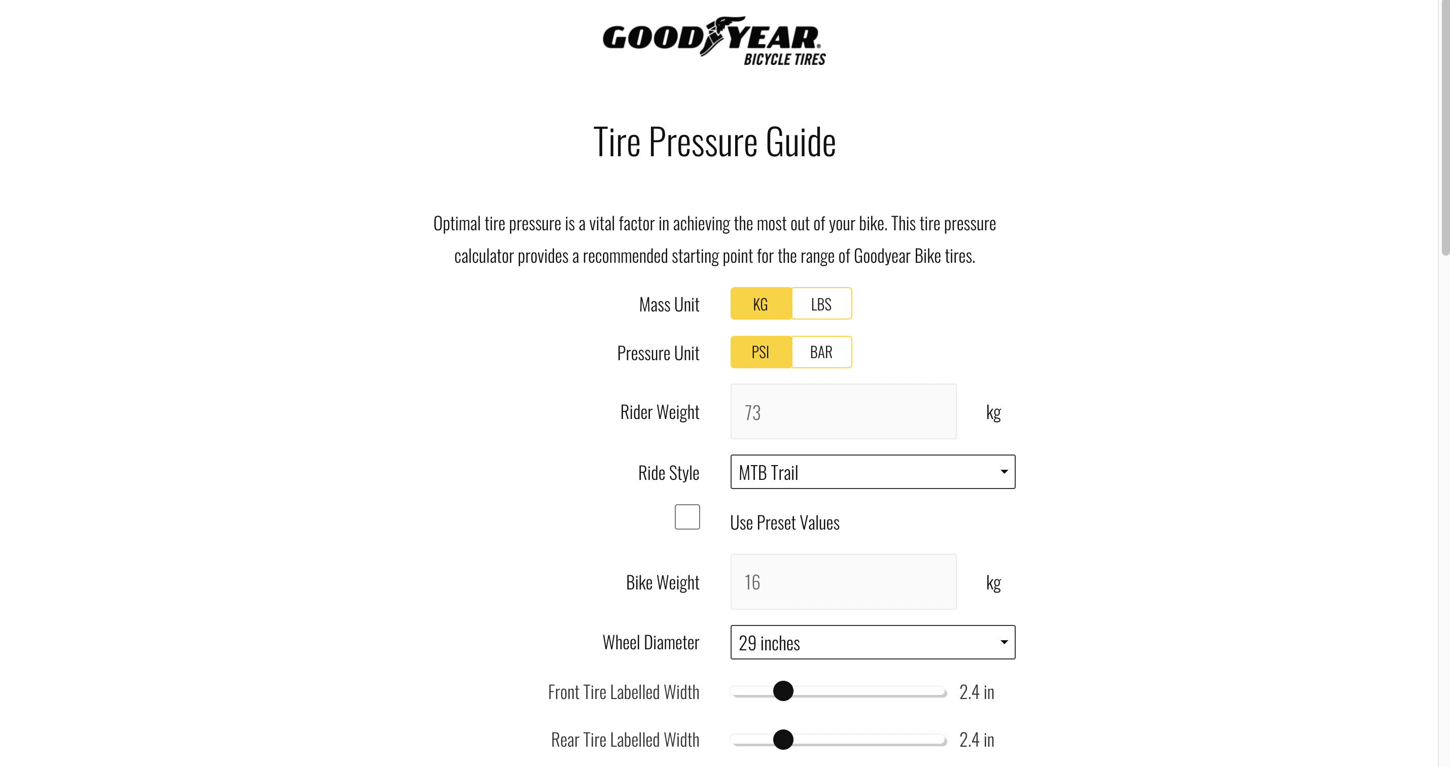 Developed in conjunction with SRAM, there’s also a new online tyre pressure calculator from Goodyear.