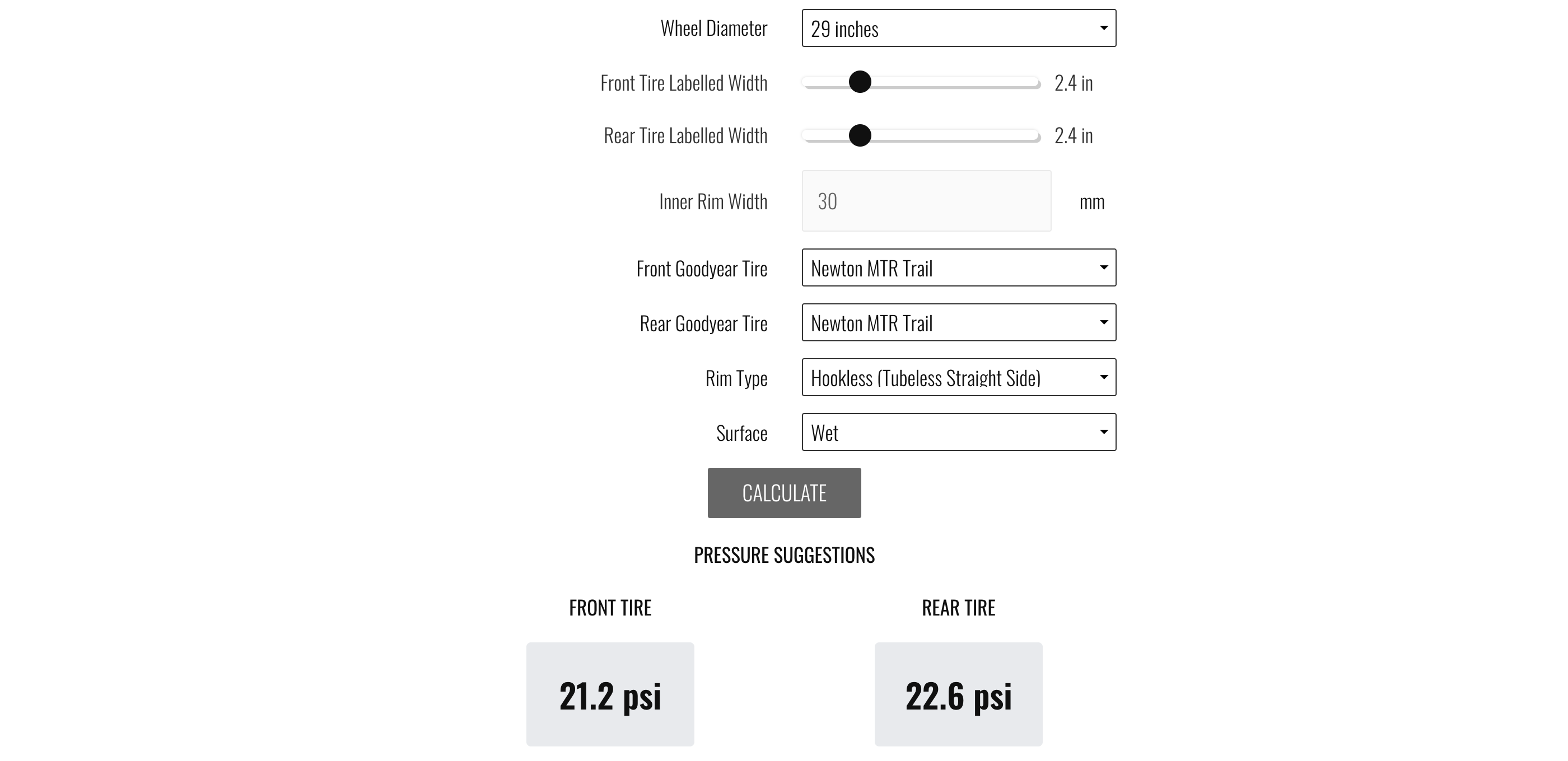 It’s certainly seems to tally with how we set up our tyres. And it could be useful for everyone who’s wondered just how much they should alter their tyre pressures depending on ground conditions, casing types, overall rider-plus-kit weight and other factors.