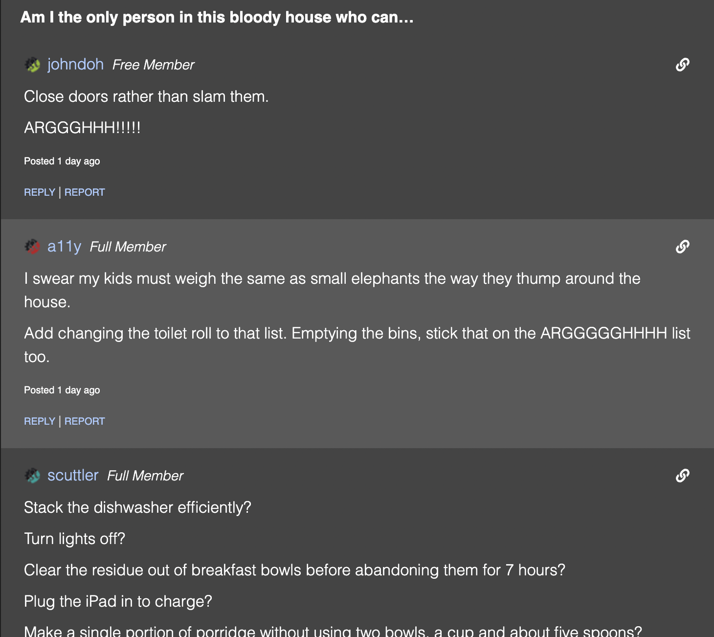 Congratulations this week go to @johndo for this excellent piece of fruitless venting. Anyone who lives with any other human(s) will no doubt sympathise…