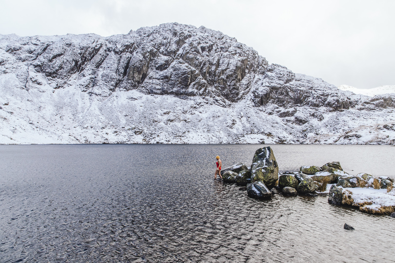 The 50-year-old Lake District-based outdoor enthusiast is co-founder of Blue Mind Swim, which coaches and mentors those keen to discover cold water skin (no wetsuit) swimming, and how the pursuit is strongly tied to mental wellbeing. McArthur says that, in the winter, she loves the challenge of seeking icy tarns high up in the mountains; “I particularly like swimming beside places I would normally climb in the summer months”, she says.